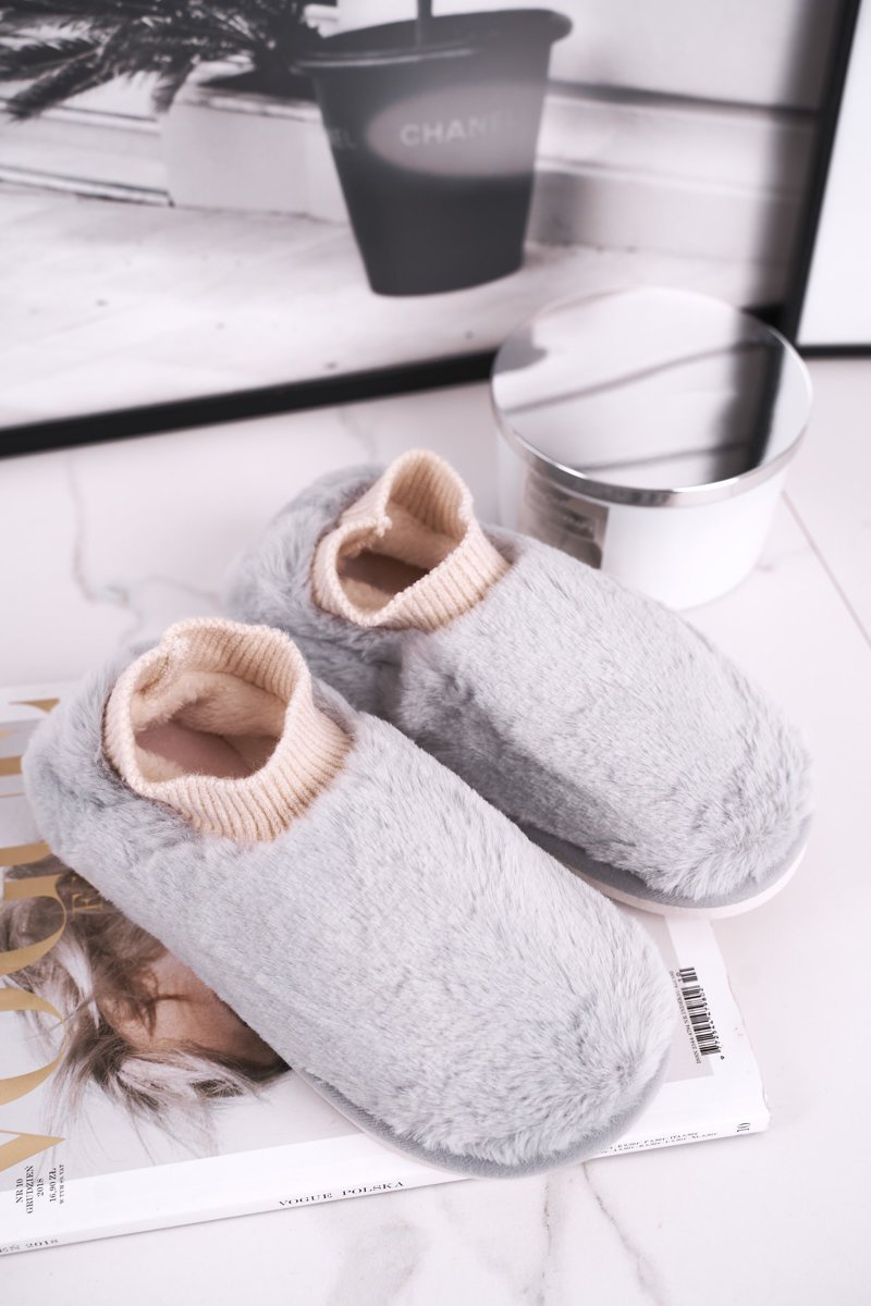 Dámské Pantofle s Kožešinou a ponožkou šedé Yeti