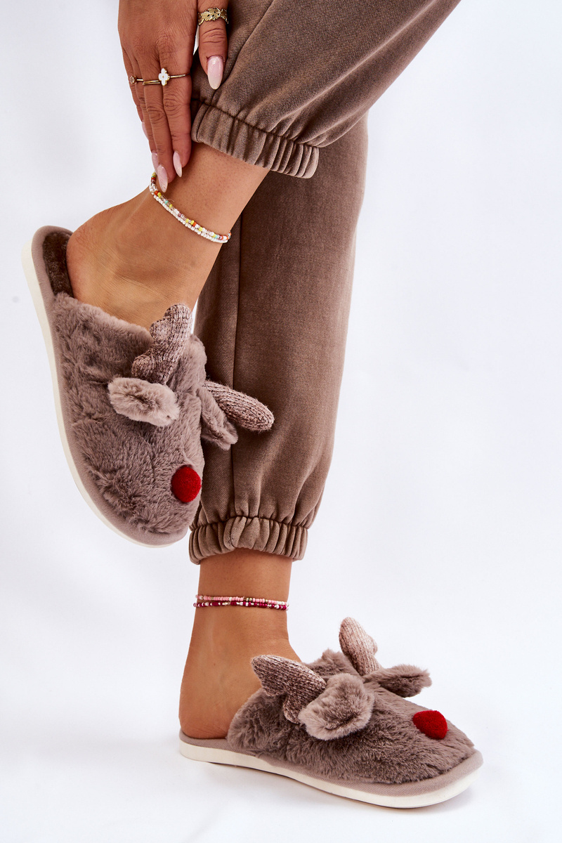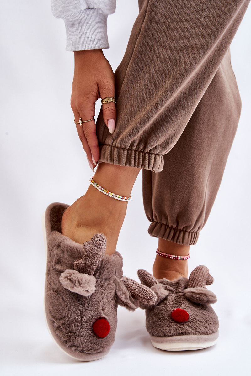 Dámské pantofle s kožešinou a soby Šedá Sopya
