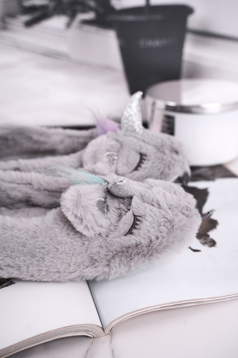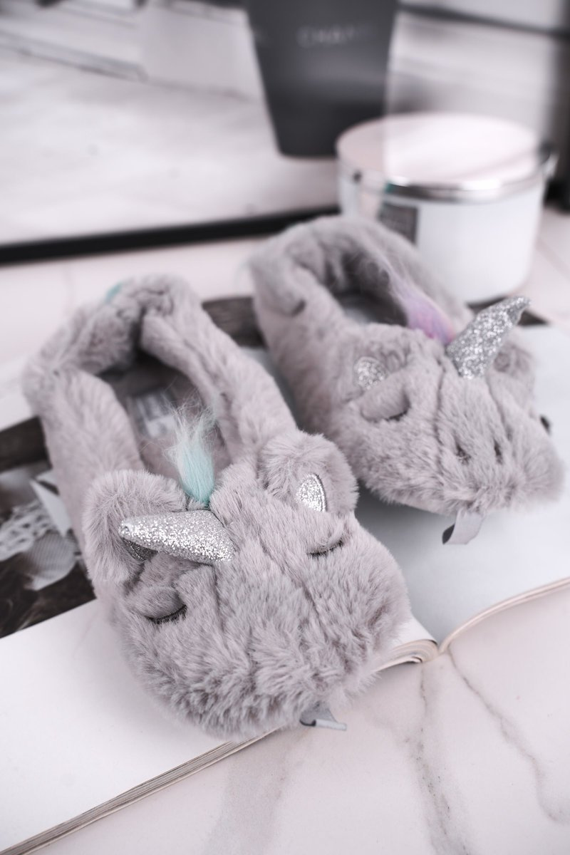 Dámské Pantofle s Kožešinou Jednorožci šedé Rainbow