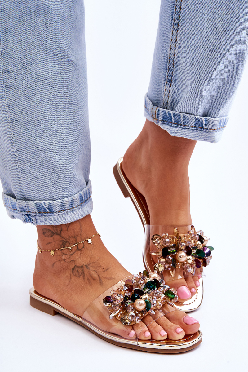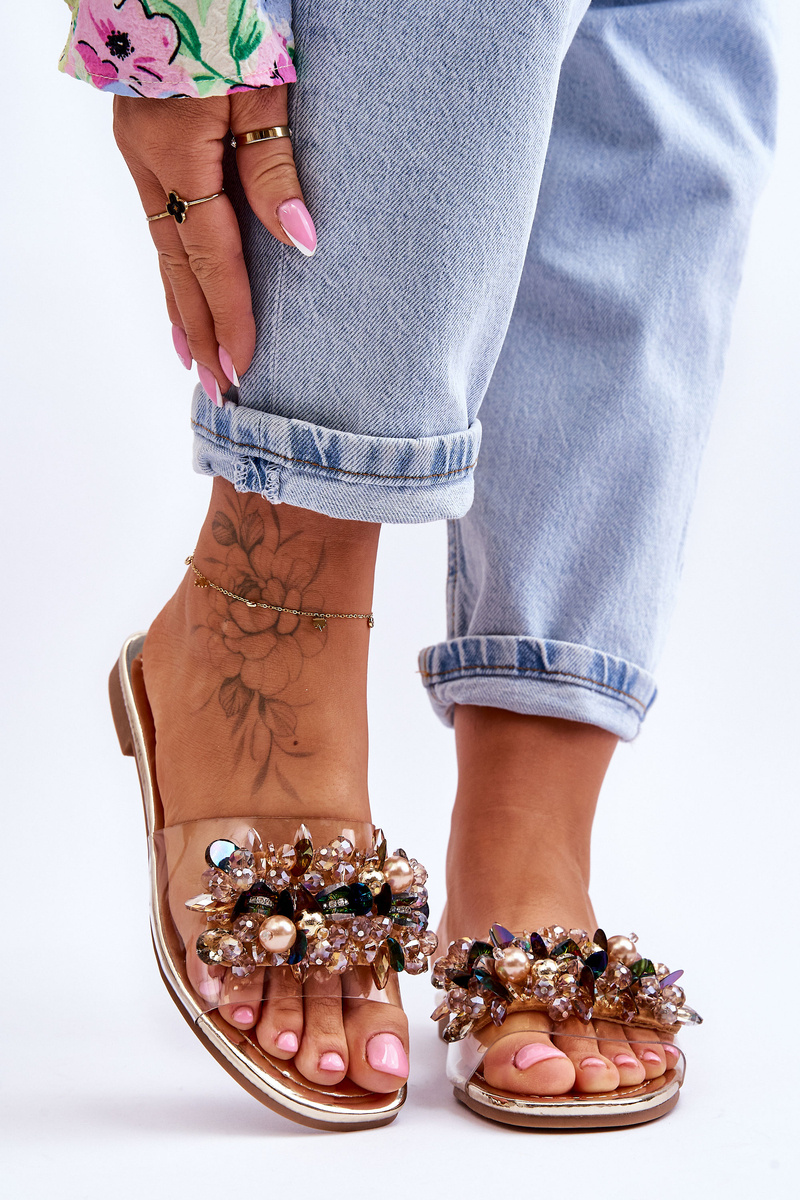 Dámské pantofle s ozdobnými kamínky S.Barski KV-576-3 Gold