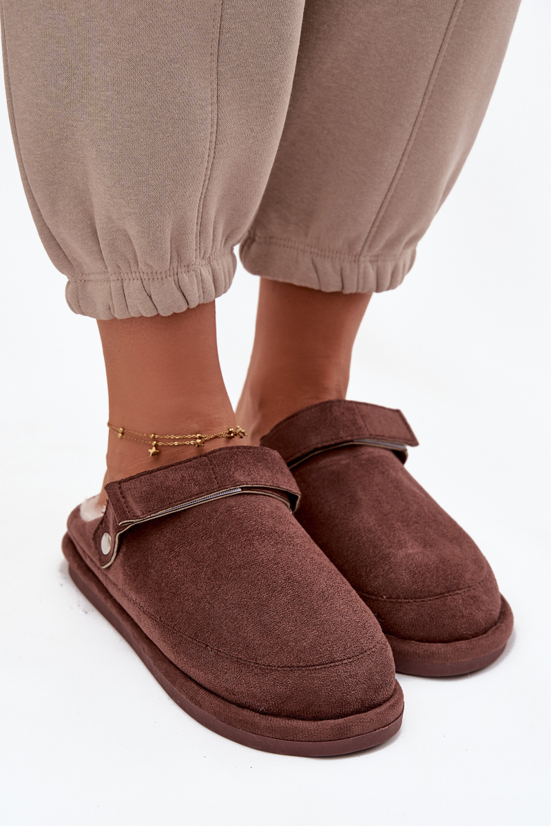Dámské pantofle s páskem Vyhřívané s kožešinkou Čokoládové Rilena