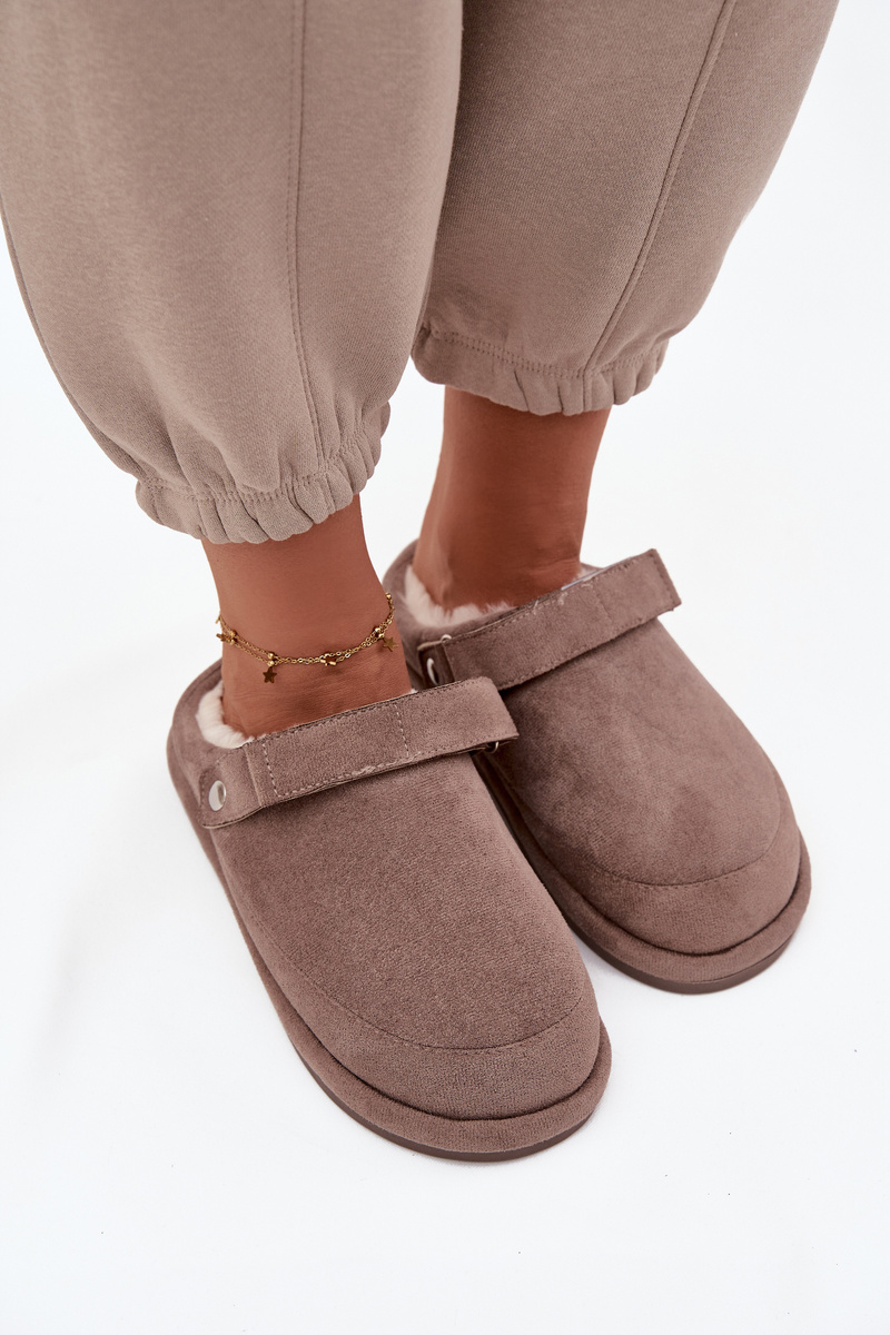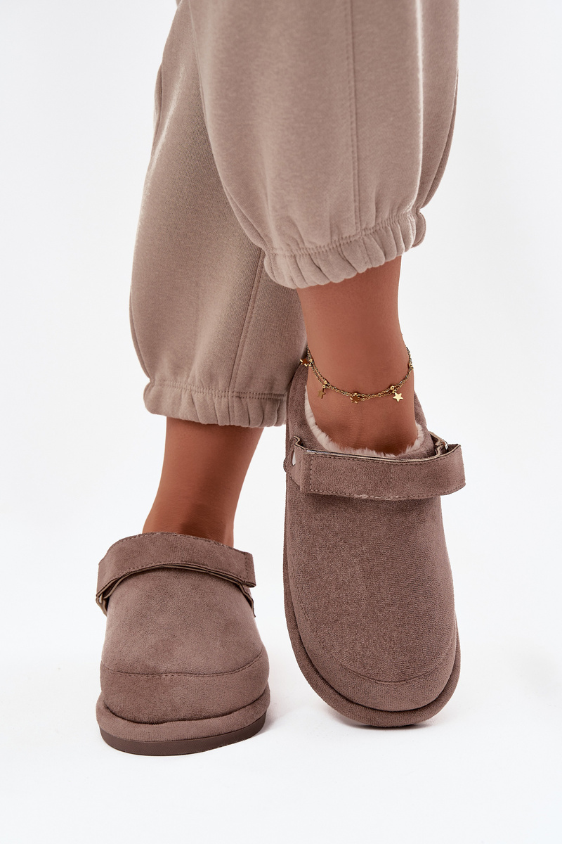 Dámské pantofle s páskem Vyhřívané s kožíškem Tmavě béžové Rilena