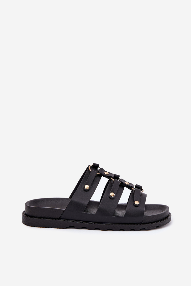 Dámské sandály vyrobené z eko kůže jsou skvělou volbou na teplejší dny. Uloženy na jemné platformě, poskytují decentní zvýšení a pohodlí při nošení. Přední část zdobí ozdobné pásky, které dodávají celku módní, ženský charakter. Ideální pro každodenní stylizace. Při výběru velikosti se řiďte tabulkou velikostí.