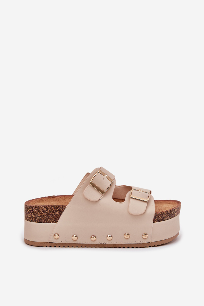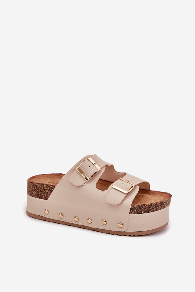 Dámské Pantofle S Přezkami Na Masivní Platformě Béžové Odisene