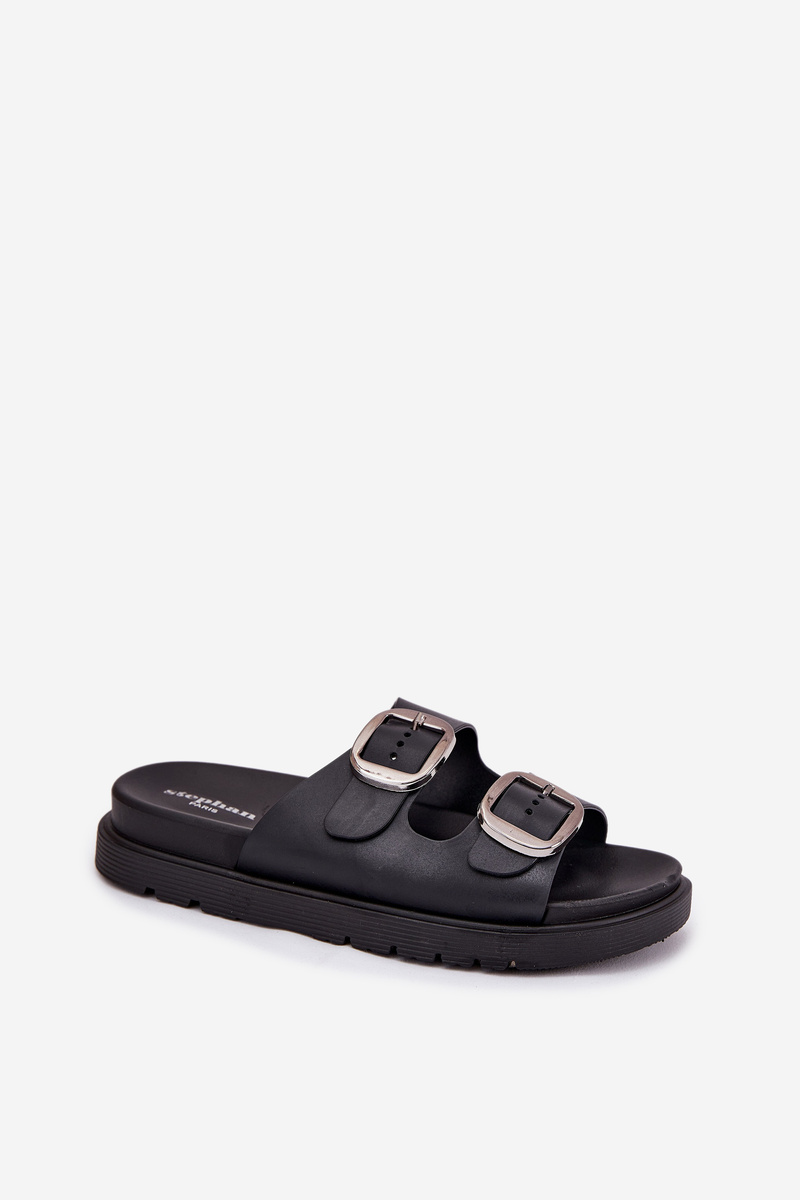 Dámské Pantofle S Přezkami Na Platformě Černé Elamas