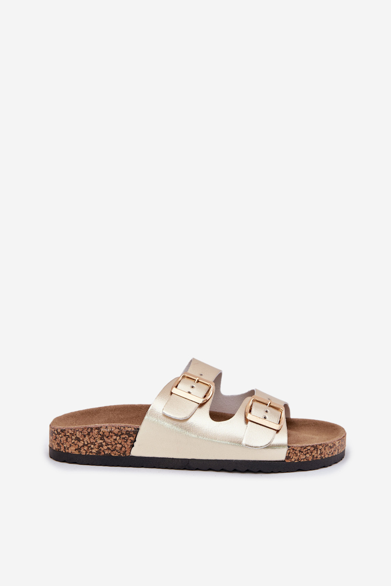 Dámské pantofle s přezkami z eko kůže zlaté Iskira