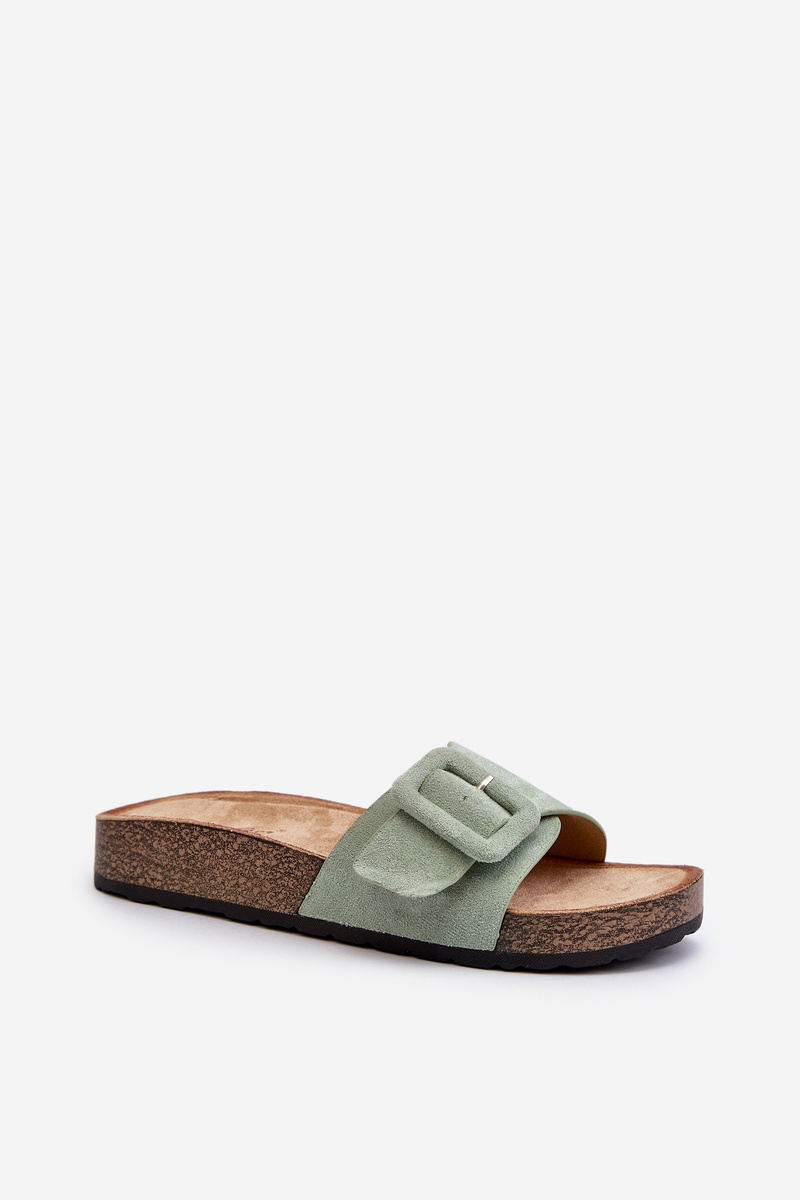 Dámské pantofle s přezkou z ekokože zelenomodré Laeltia
