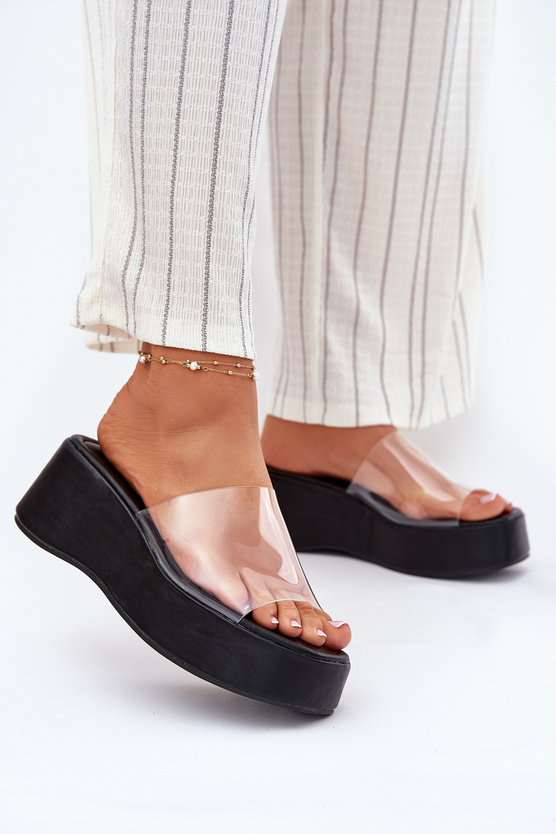 Dámské pantofle s průhledným páskem na klínu černé Meltiana