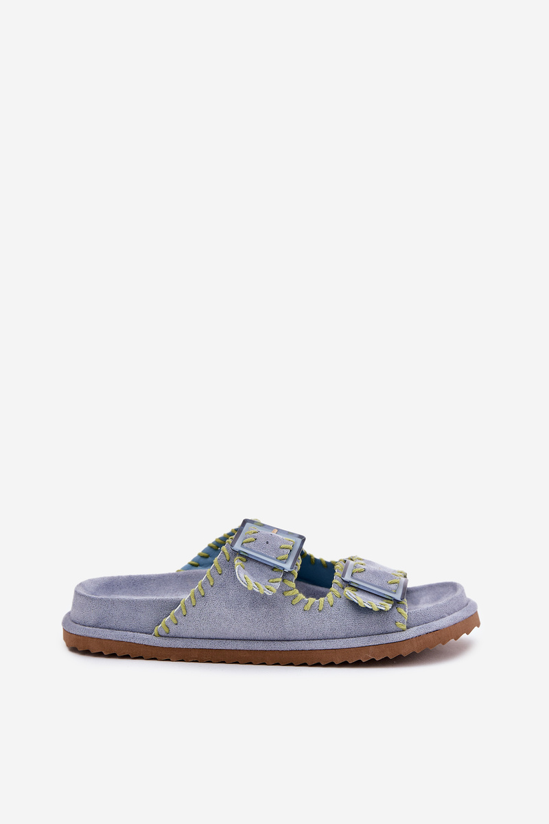 Dámské Pantofle S Sponami A Ozdobným Obšitím Modré Visley