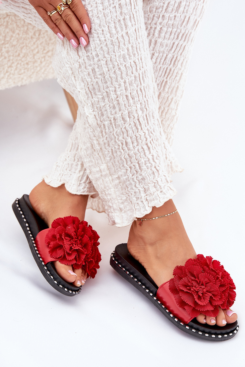 Dámské Pantofle S Textilními Květinami Červené Elachase