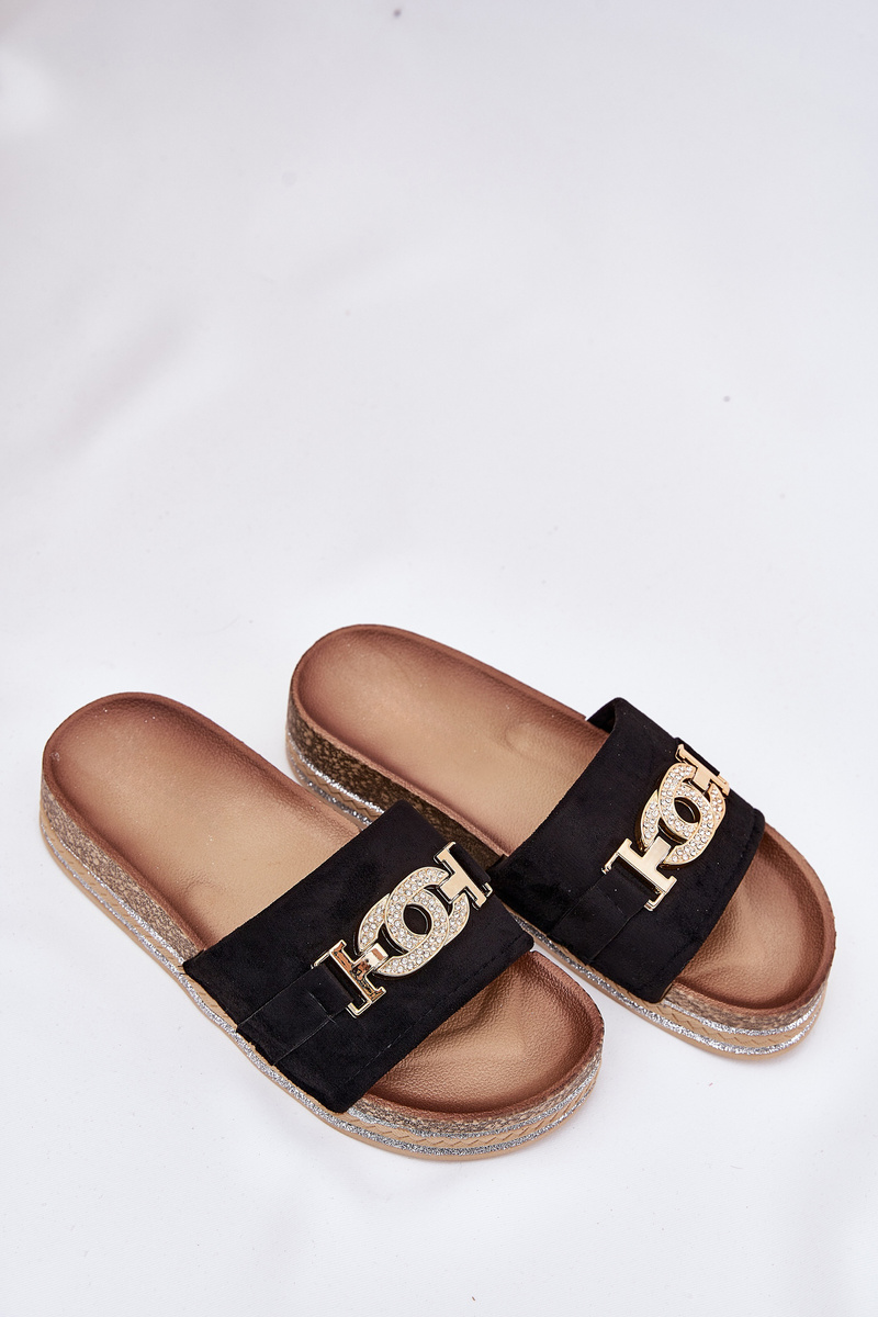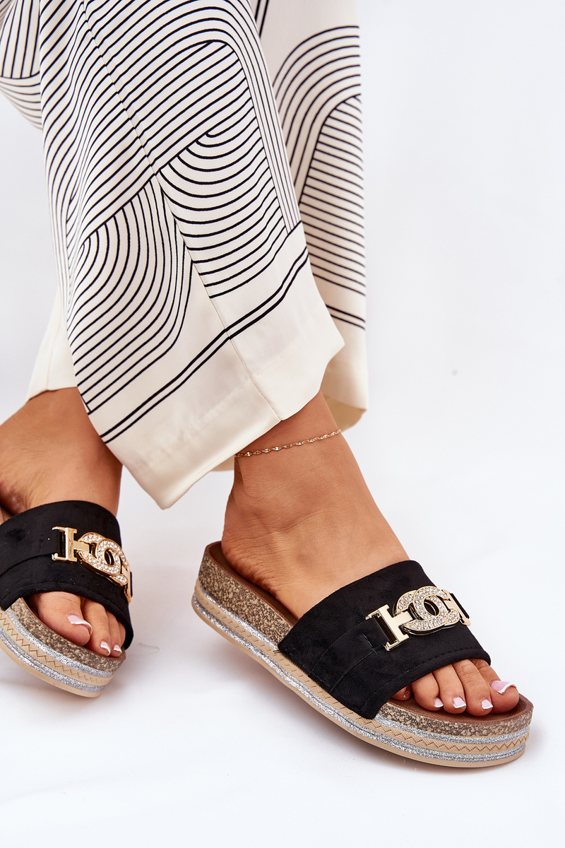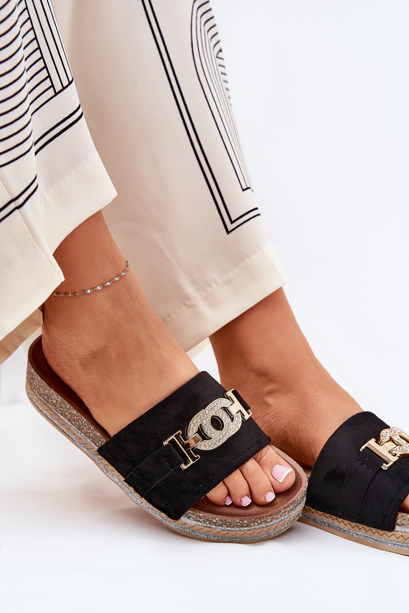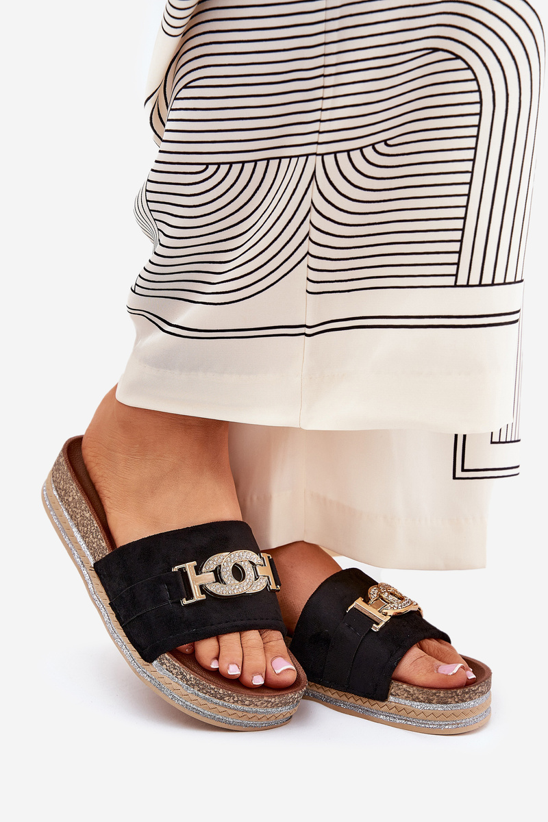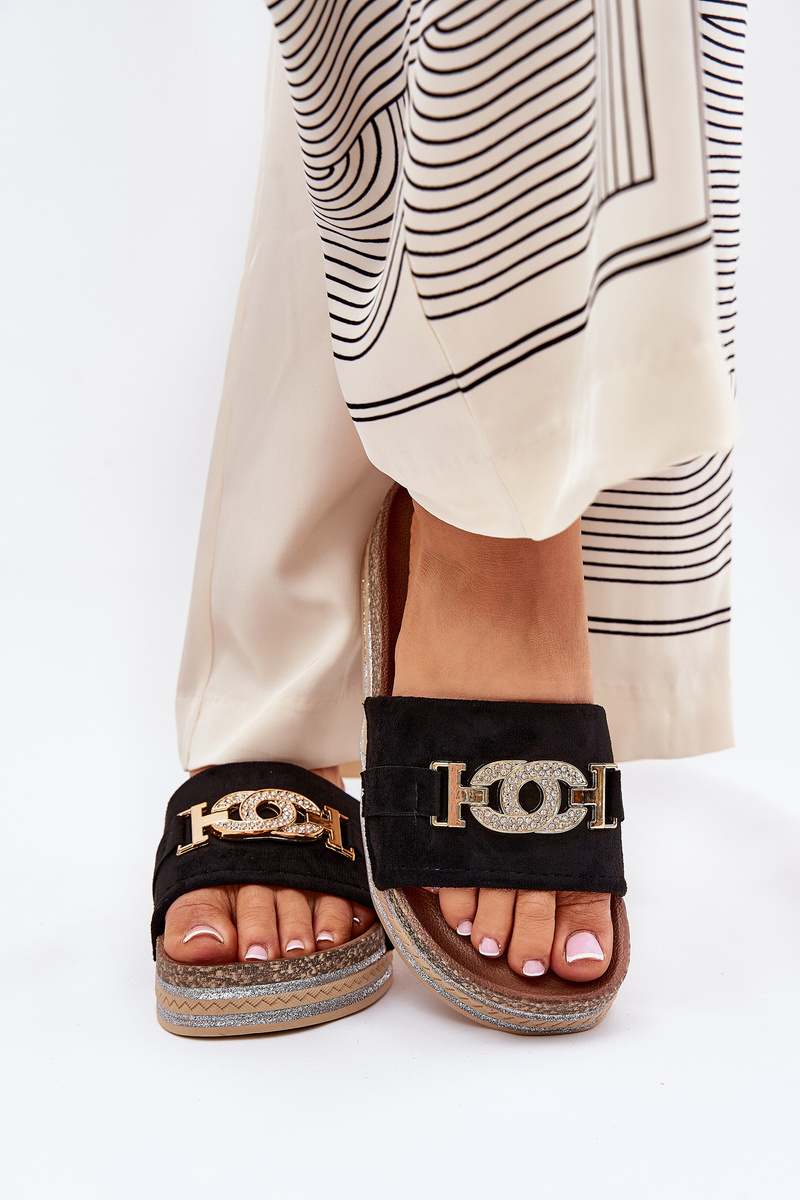 Dámské Pantofle Se Zlatým Detailem Na Platformě S Leskem Černé Eanes