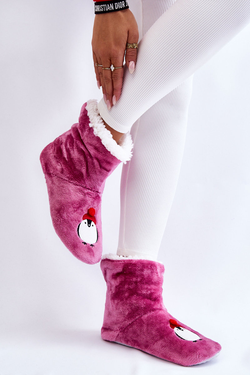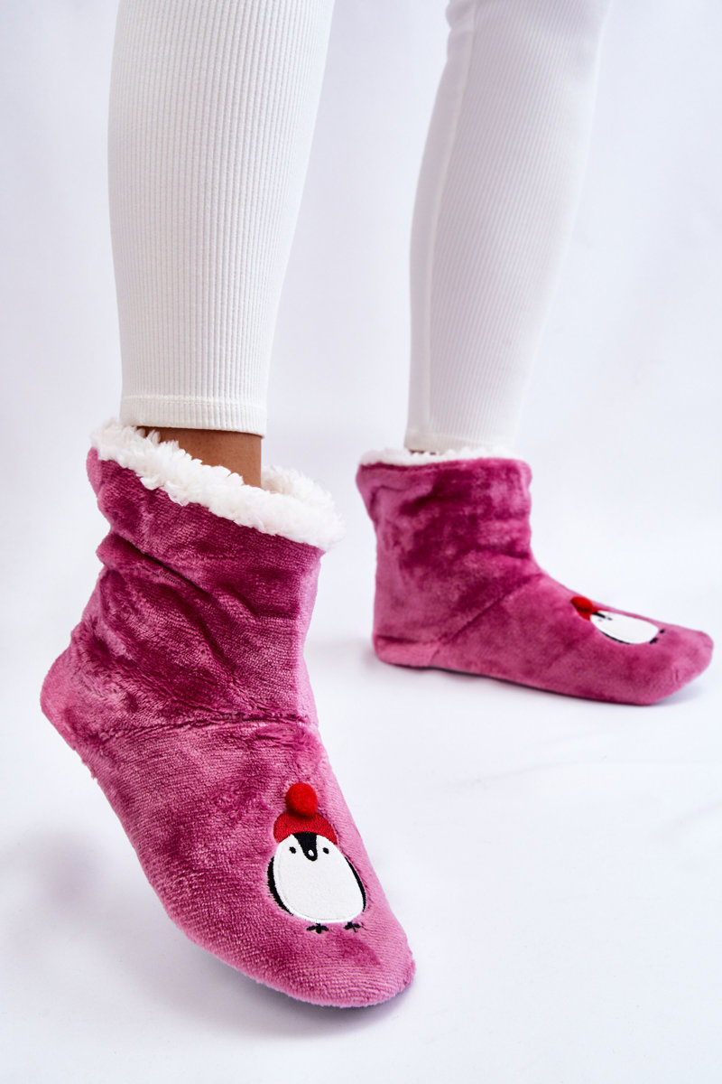 Dámské pantofle Teplé pantofle s tučňáky fialové