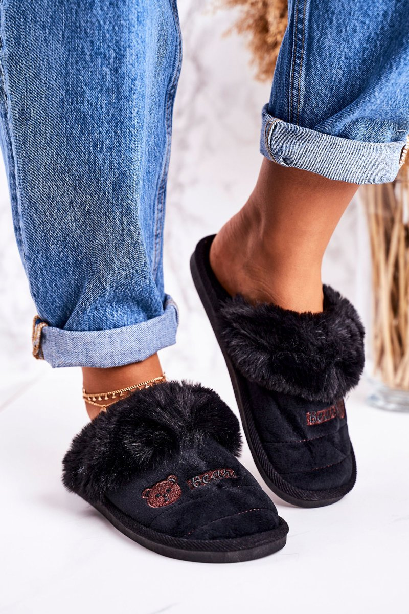 Dámské Papuče S Kožešinou černé Teddy