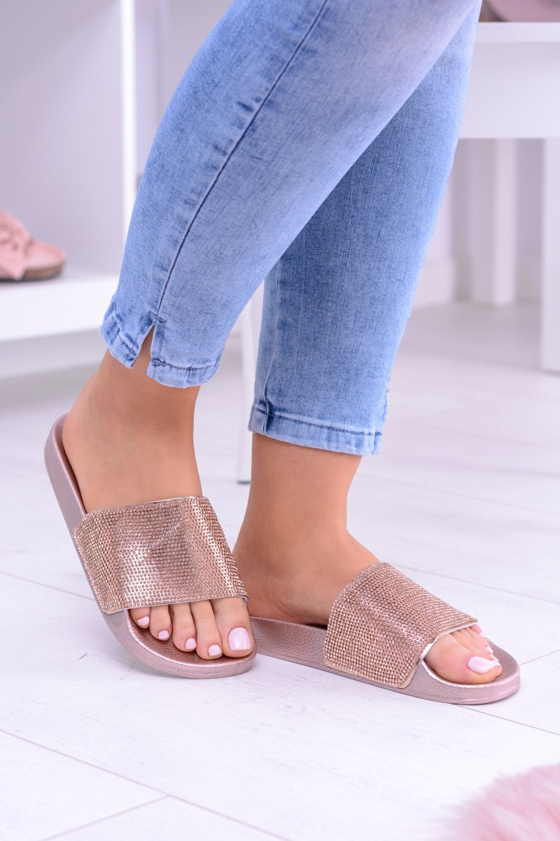 Dámské papuče se zirkony LadyCristal růžové zlaté