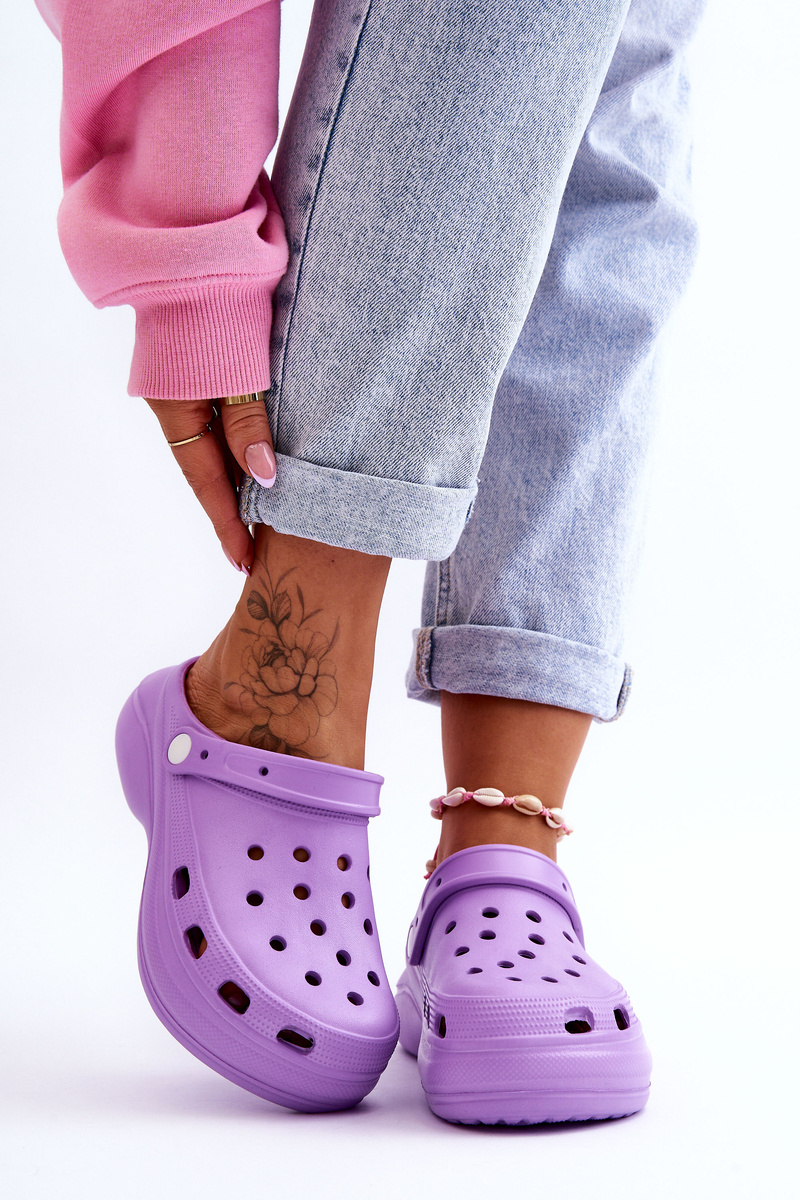 Dámské pantofle vyrobené z vysoce kvalitního pěnového materiálu. Vložka s vložkami znamená, že nohy nebudou tolik unavené ani po celodenním používání. Pohyblivý pásek zabraňuje sklouznutí nohy. Boty jsou nasazeny na masivním podpatku a platformě. Perfektní model pro práci na zahradě nebo použití doma místo pantoflí. Otvory ve svršku umožňují dostatečné větrání obuvi. Při výběru velikosti použijte tabulku velikostí.
