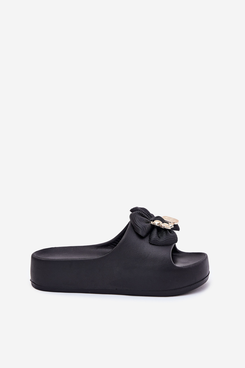 Dámské Pěnové Pantofle Na Platformě S Mašlí A Broží Černé Marlize