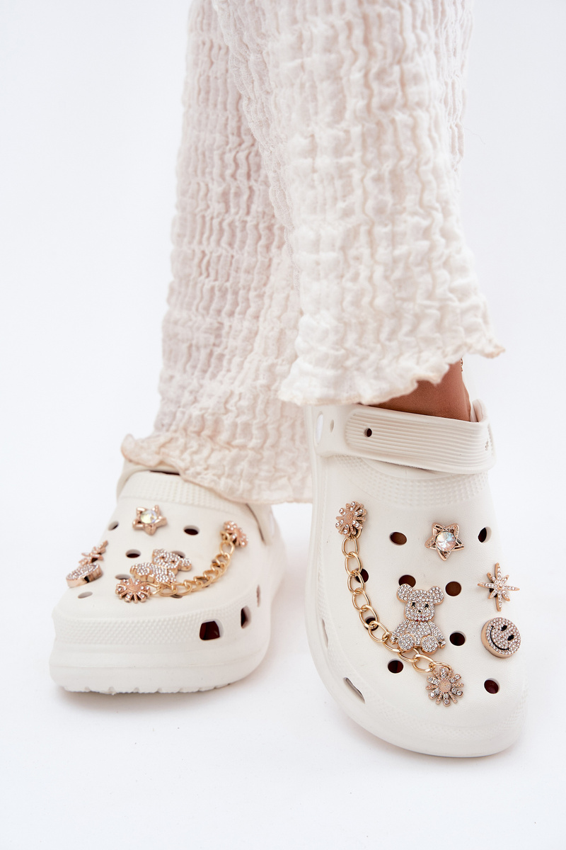 Dámské pantofle z pěnového materiálu na silné podrážce jsou pohodlnou volbou na teplé dny. Široké, zakryté špičky zajišťují komfort a zlaté detaily přidávají stylový akcent. Skvělé pro každodenní stylizace, k bazénu nebo na letní výlety. Při výběru velikosti se řiďte tabulkou velikostí.