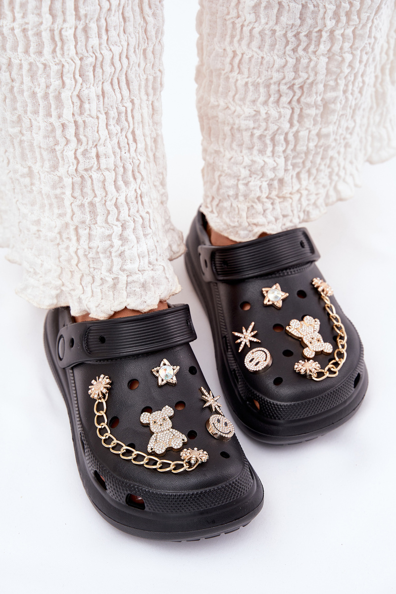Dámské pantofle z pěnového materiálu na silné podrážce jsou pohodlnou volbou na teplé dny. Široké, zakryté špičky zajišťují komfort a zlaté detaily přidávají stylový akcent. Skvělé pro každodenní stylizace, k bazénu nebo na letní výlety. Při výběru velikosti se řiďte tabulkou velikostí.