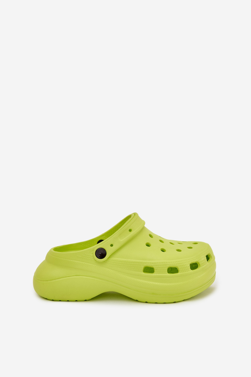 Dámské pantofle vyrobené z pěnového materiálu. Vložka s výstupky způsobuje, že nohy nebudou tak unavené, ani po celém dni nošení. Pohyblivý pásek chrání před posouváním nohy. Boty jsou usazeny na masivním podpatku a platformě. Ideální model na práci na zahradě nebo používání doma místo bačkor. Otvory v lýtkové části umožňují odpovídající ventilaci obuvi. Při výběru velikosti prosíme řídit se tabulkou velikostí. Při výběru velikosti se řiďte tabulkou velikostí.