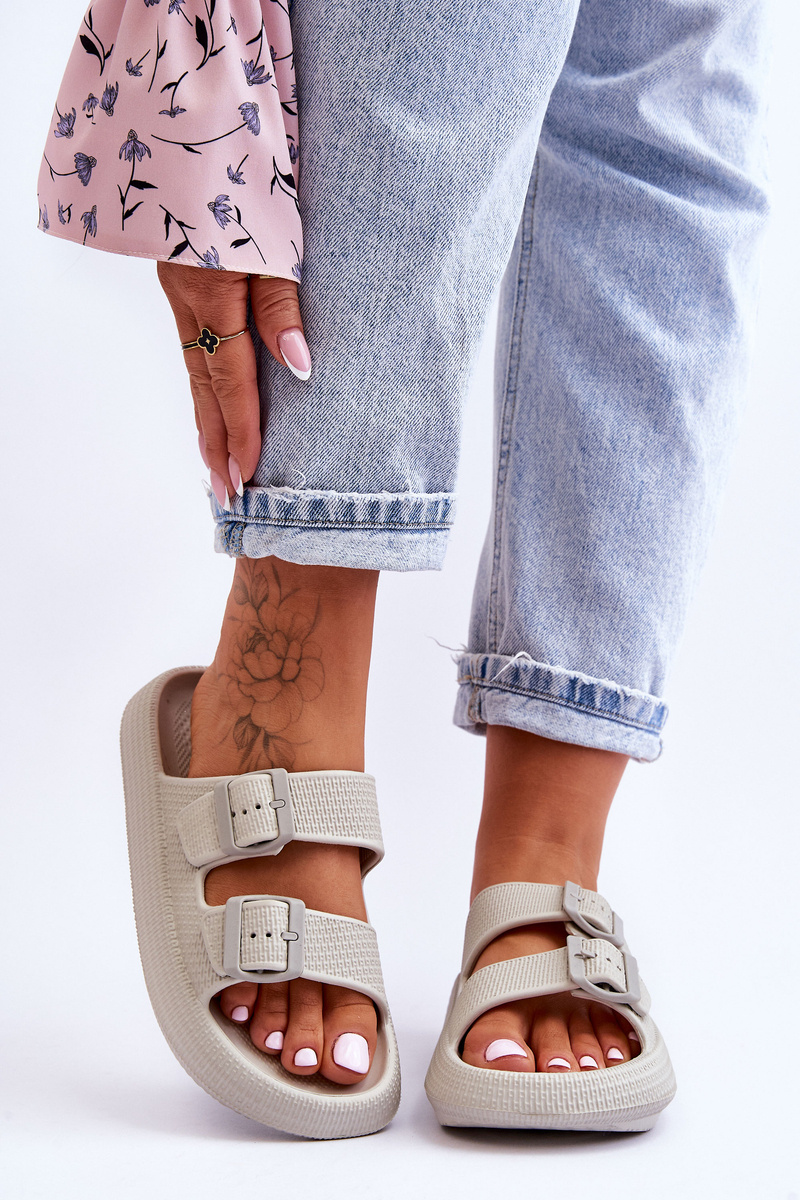 Dámské pěnové sandály s pruhy světle šedá Sharmen