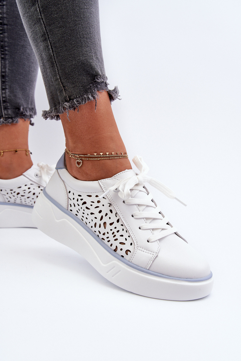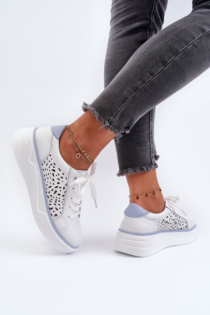 Dámské perforované tenisky na platformě z bílé kůže Peilaeno
