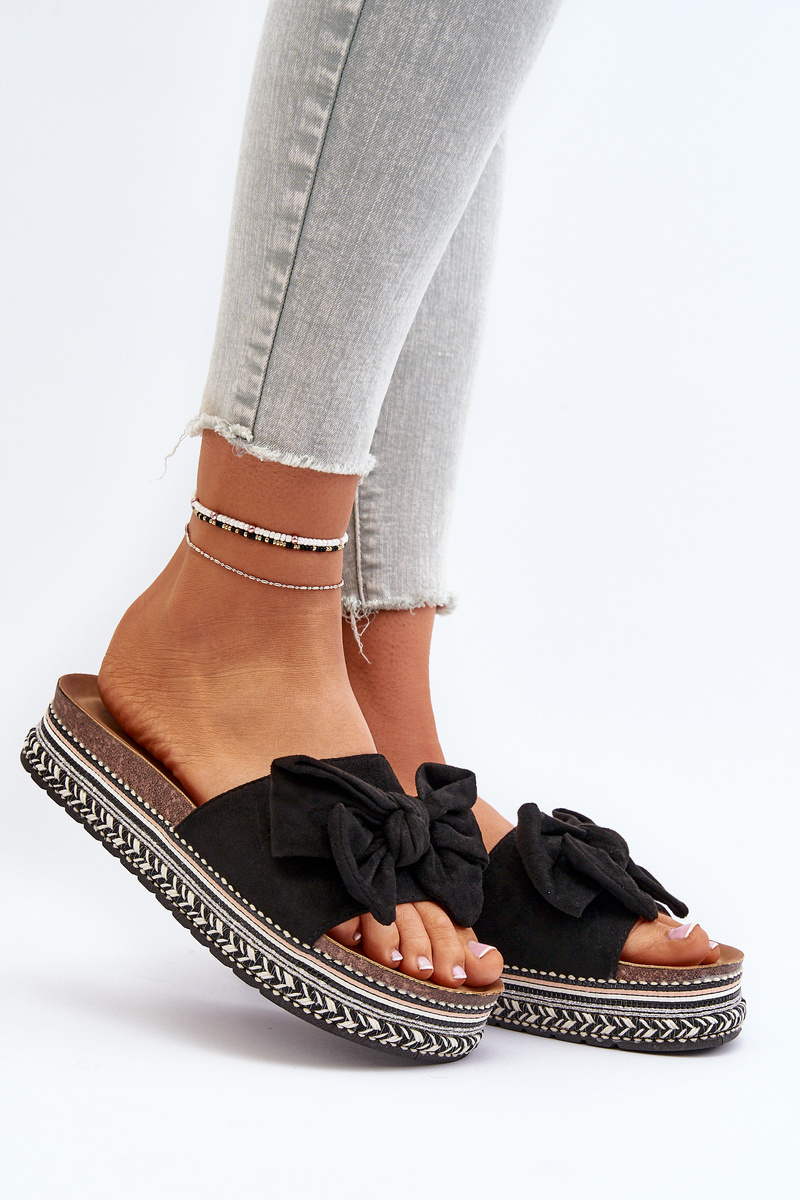 Dámské platformové žabky s mašlí Černé Evatria