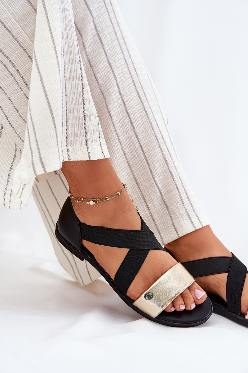 Dámské Plážové Sandály S Elastickými Pásky Černozlaté Marinea