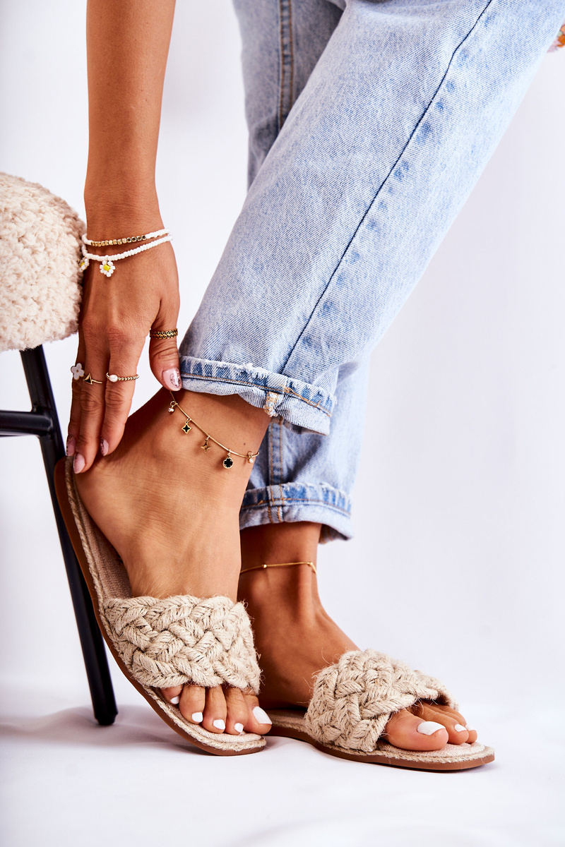 Jedinečné dámské pantofle jsou vyrobeny z látkového svršku. Díky pletenému pásku na přední straně jsou tyto žabky skvělé pro boho styling. Měkká stélka je vyrobena z látky. Kolem je ozdobný cop. Boty mají otevřenou špičku. Pantofle mají protiskluzovou podrážku. Módní a pohodlné na používání – tyto žabky prostě musíte mít! Při výběru velikosti použijte tabulku velikostí.