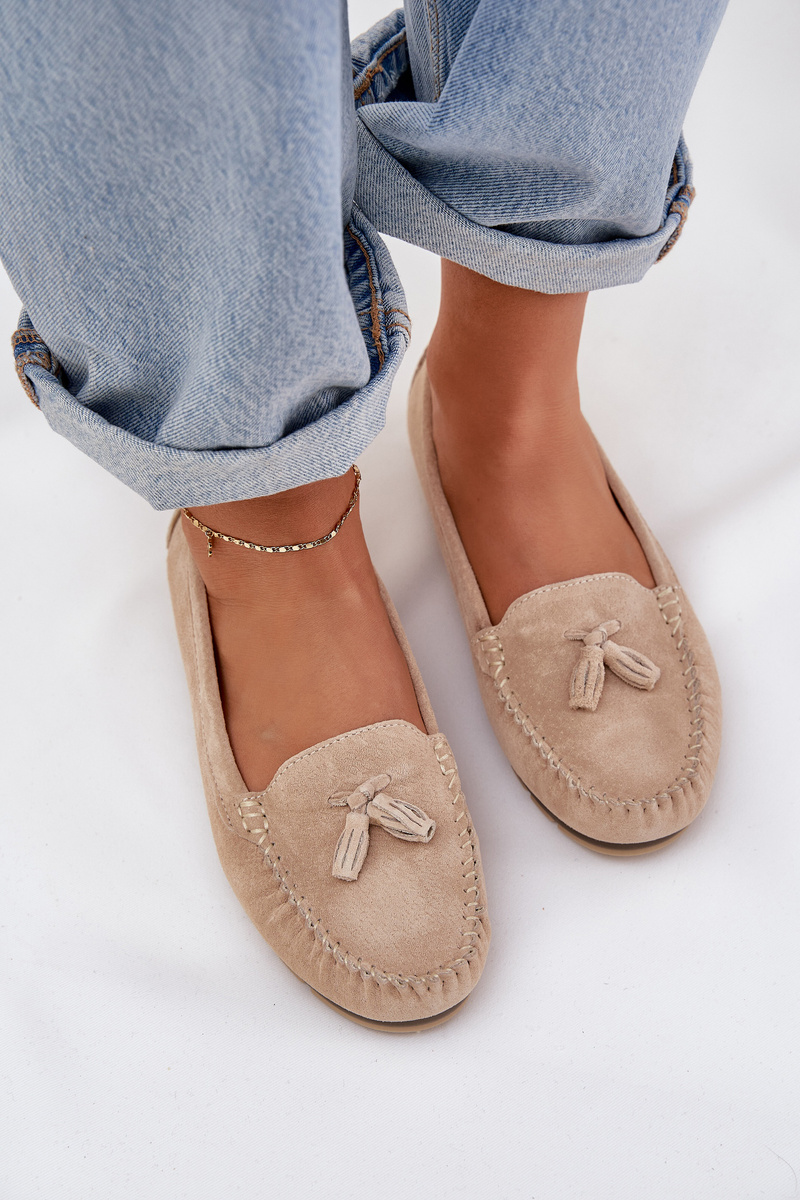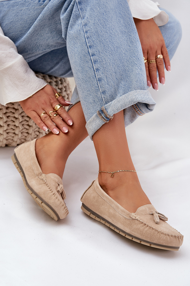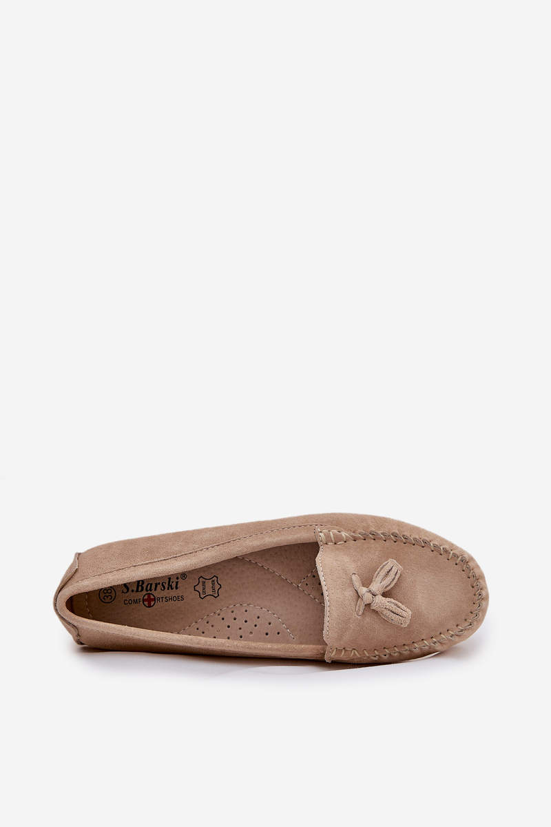 Dámské Plné Klasické Zamšové Mokasíny S.Barski LR51-548 Béžové