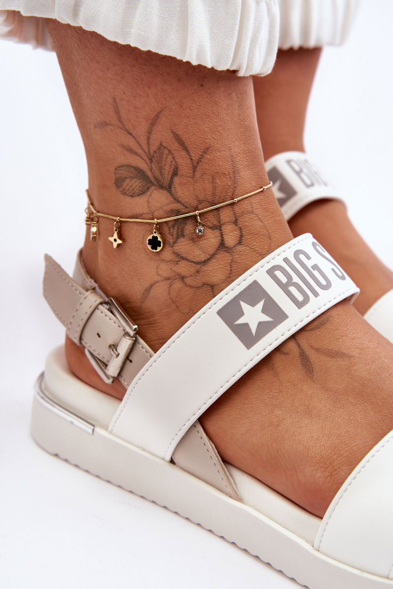Klasické dámské sandály jsou vyrobeny z kombinace eko kůže a látky. Tento model se zapíná nastavitelným popruhem s přezkou. Sandály jsou zasazeny na jemné platformě. Vložka a platforma jsou vyrobeny z plastu. Skvělý model pro teplejší dny! Určitě se podívejte i na další modely dámských sandálů Big Star! Při výběru velikosti se řiďte tabulkou velikostí.