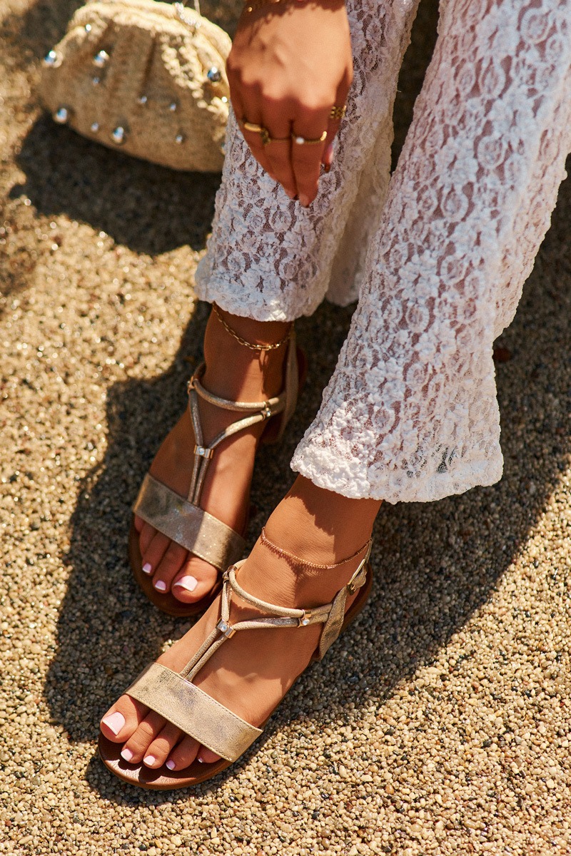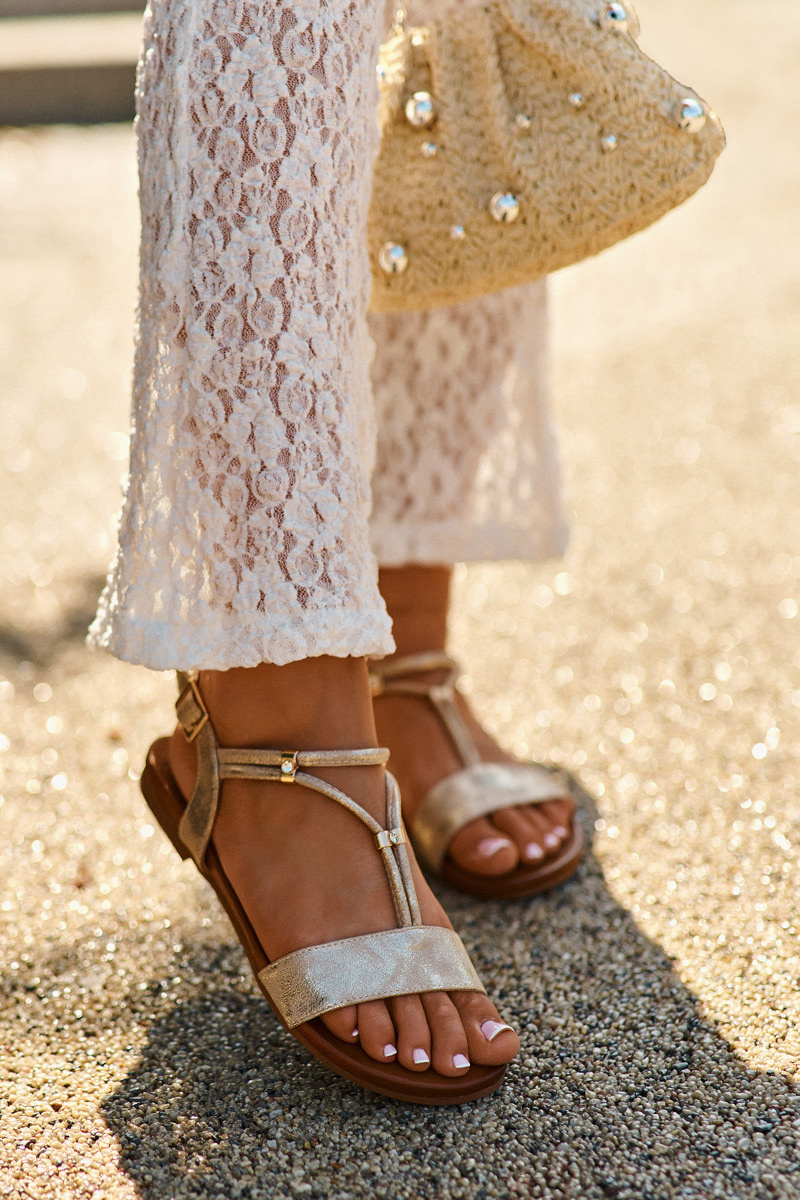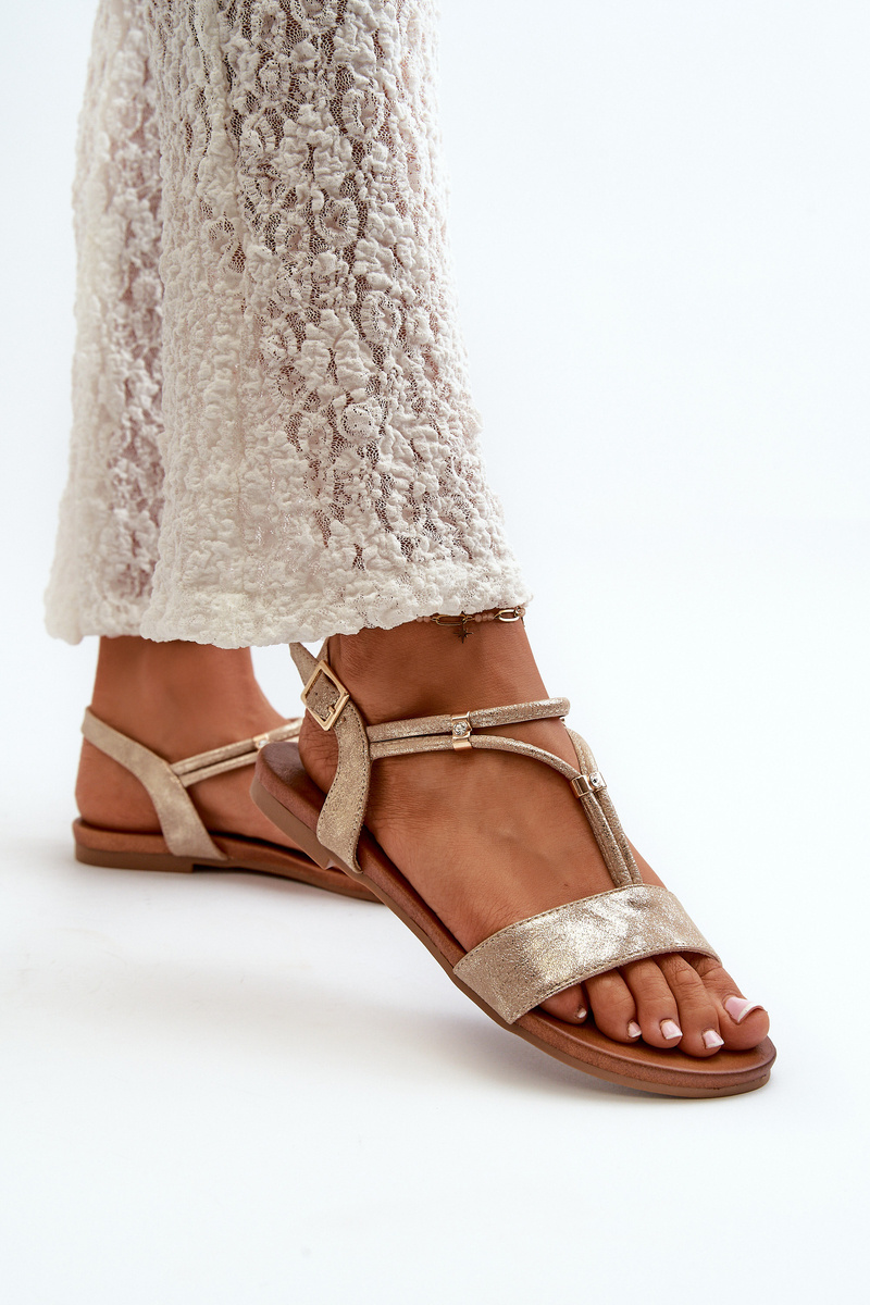 Dámské Ploché Sandály S Pásky S.Barski KV27-010 Zlaté