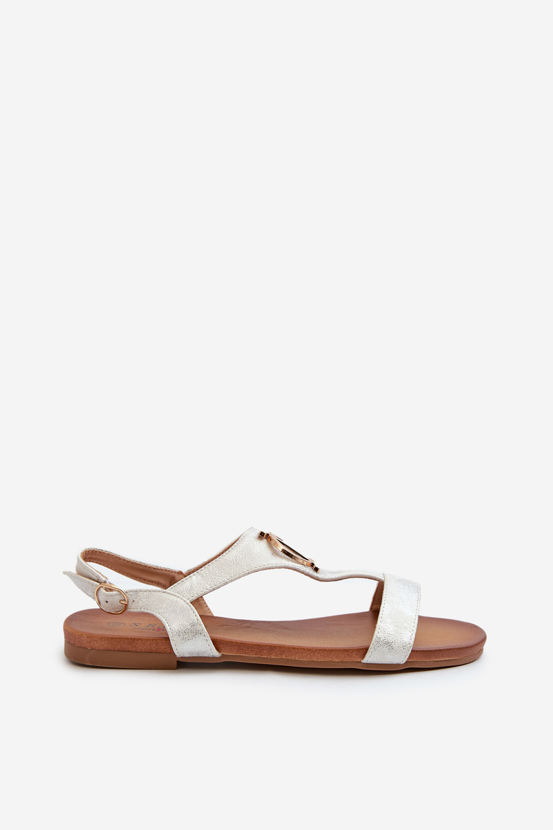 Dámské Ploché Sandály S Zlatou Ozdobou S.Barski KV27-051 Bílo-Stříbrné