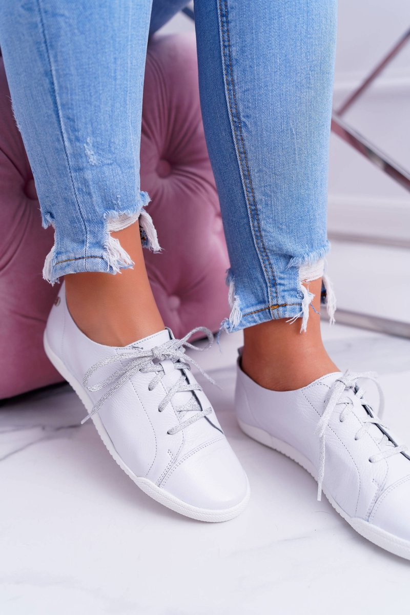 Dámské polobotky tenisky Maciejka Kožené bílé 4049A