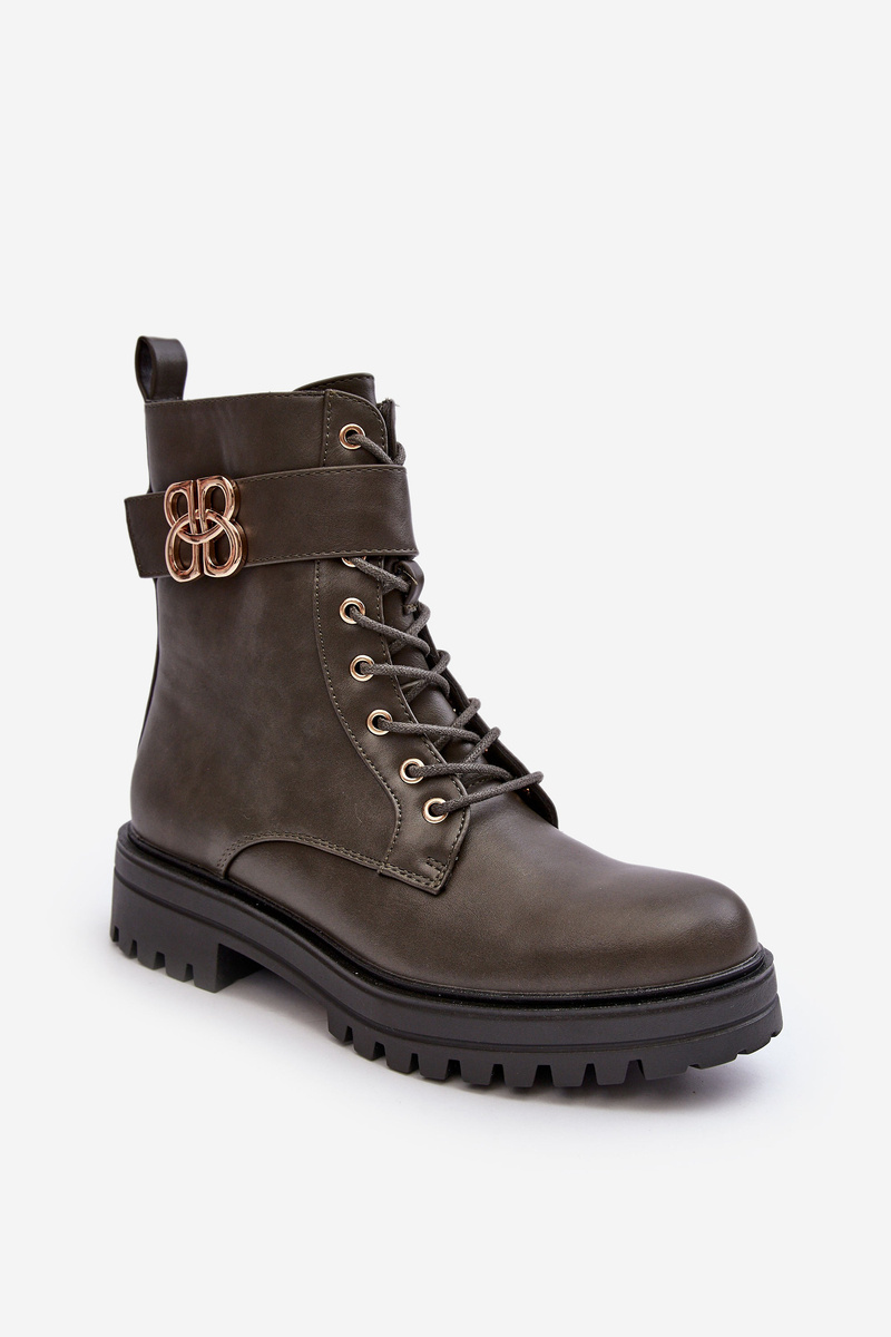 Boty žen na plochém, stabilním podpatku. Přední část je šněrovaná a navíc uzavřena zipem. Špičky jsou zaoblené. Uvnitř je podšívka zimního kožichu. Na krátkém pásku je zlatá ozdoba. Navíc je patka zesílena. Při výběru velikosti se řiďte tabulkou velikostí.