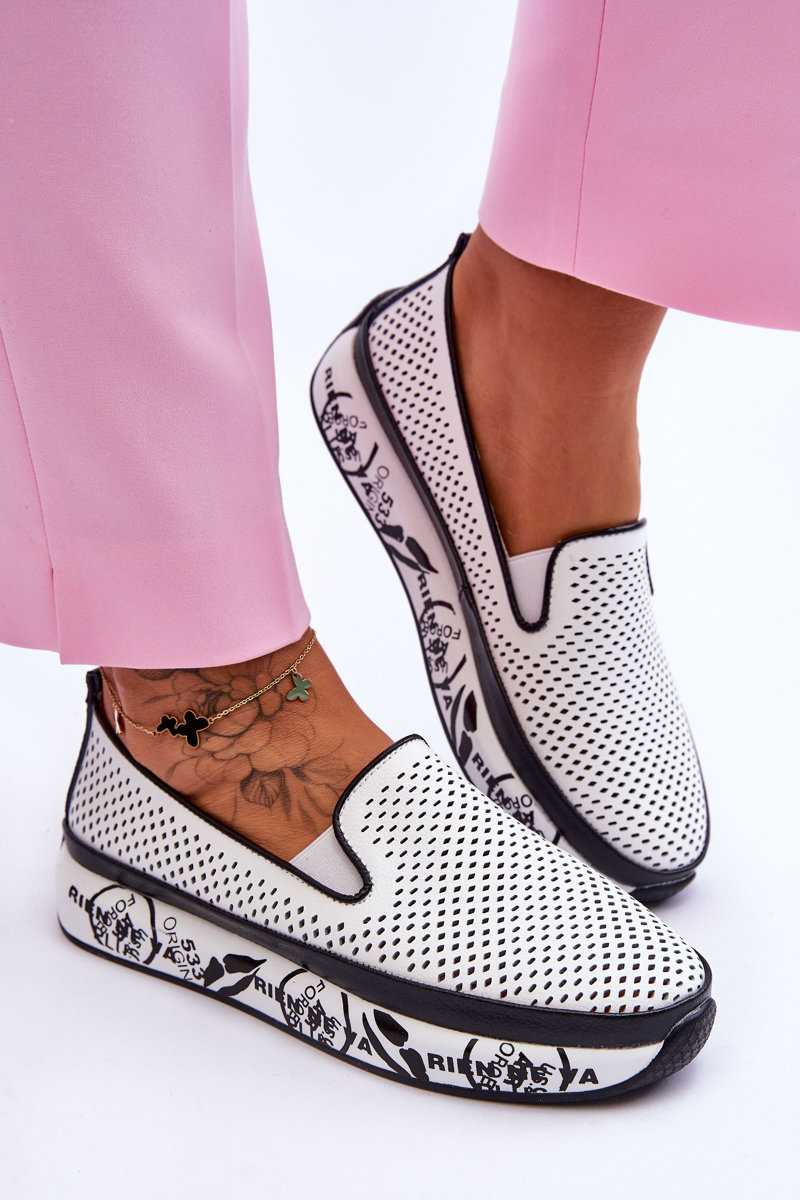 Dámské prolamované kožené tenisky Slip-On bílé Sorito