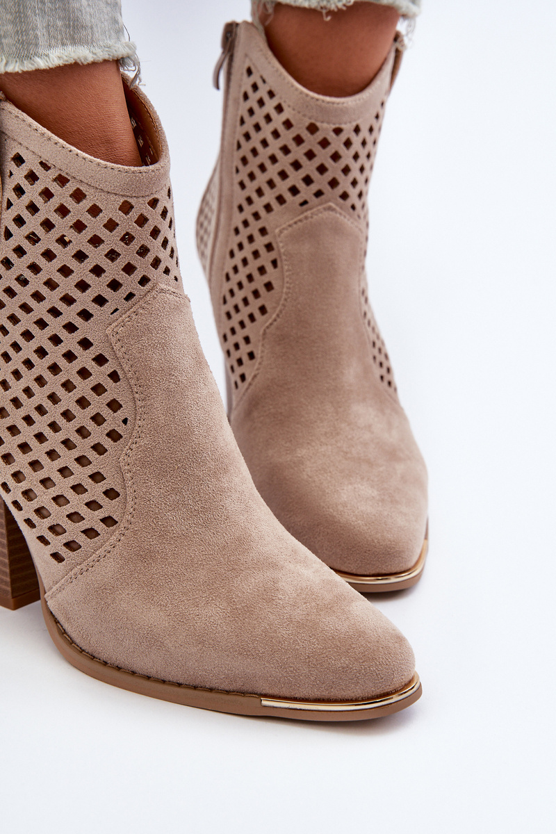 Dámské průsvitné kotníčkové botky z ekosuede na podpatku béžové Stardara