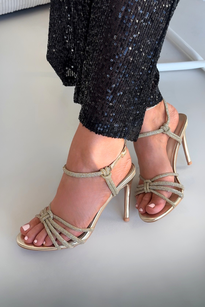 Dámské sandály na jehlovém podpatku s pásky a kryštály zlaté Tanelle