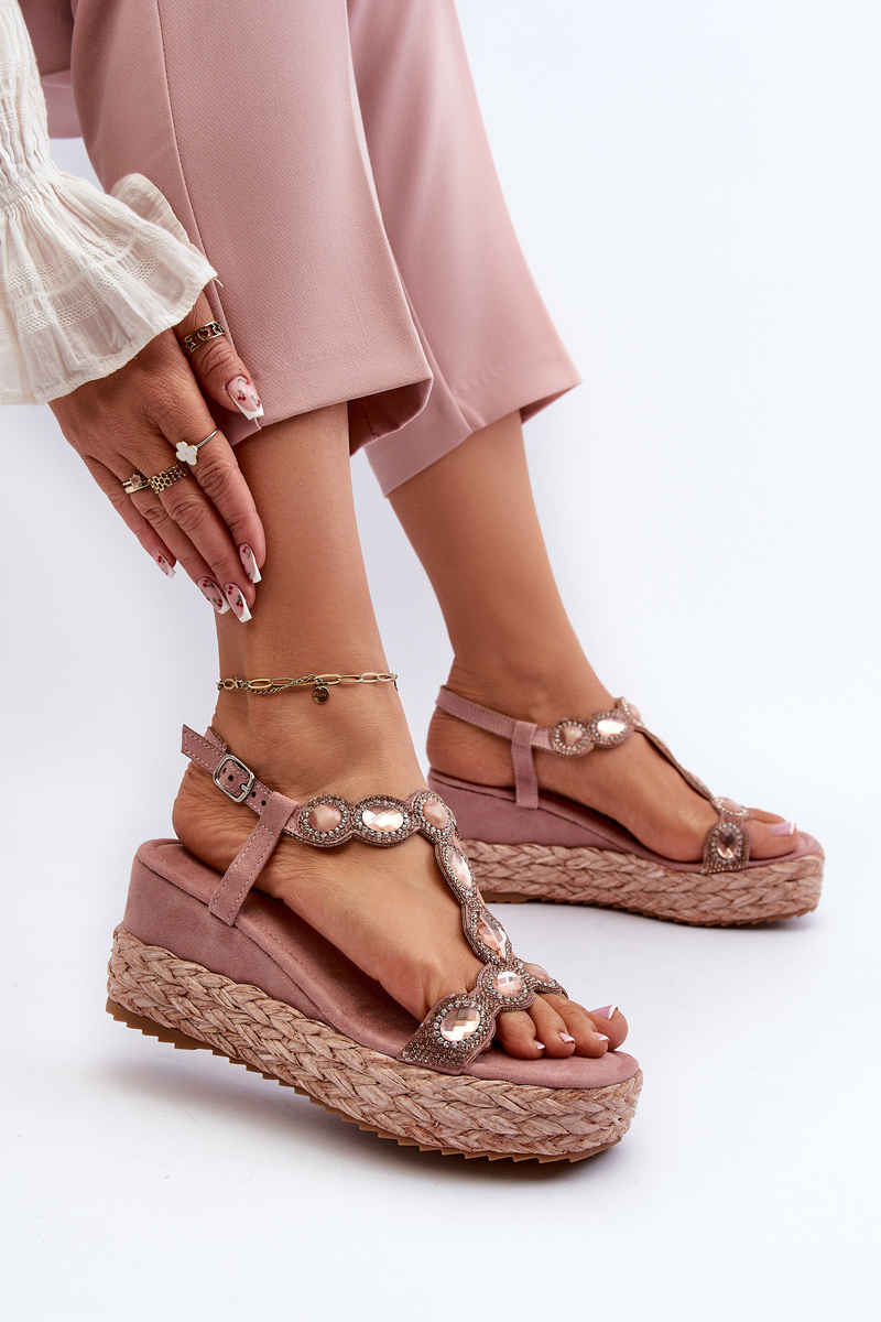Dámské sandály na klínku s pletencem S.Barski MY291 Růžové