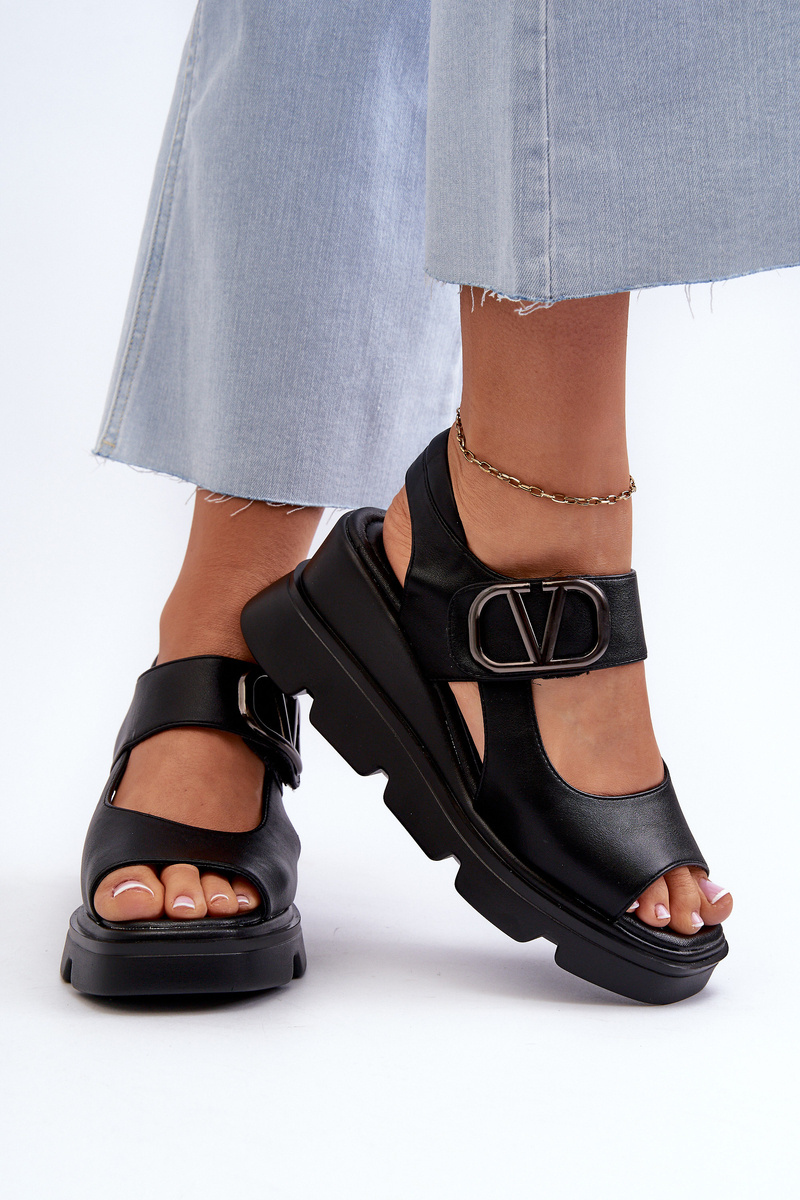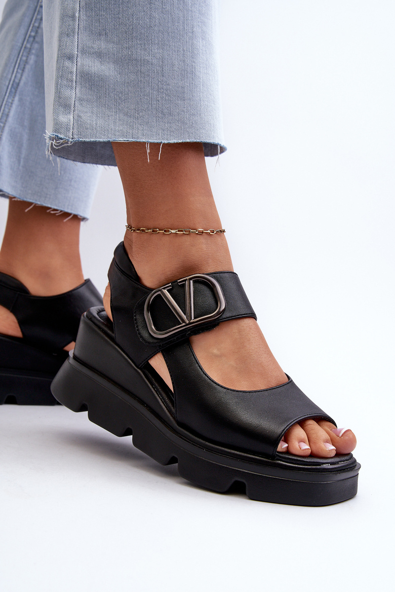 Dámské sandály na klínové podrážce a platformě z ekokože černé Triaola