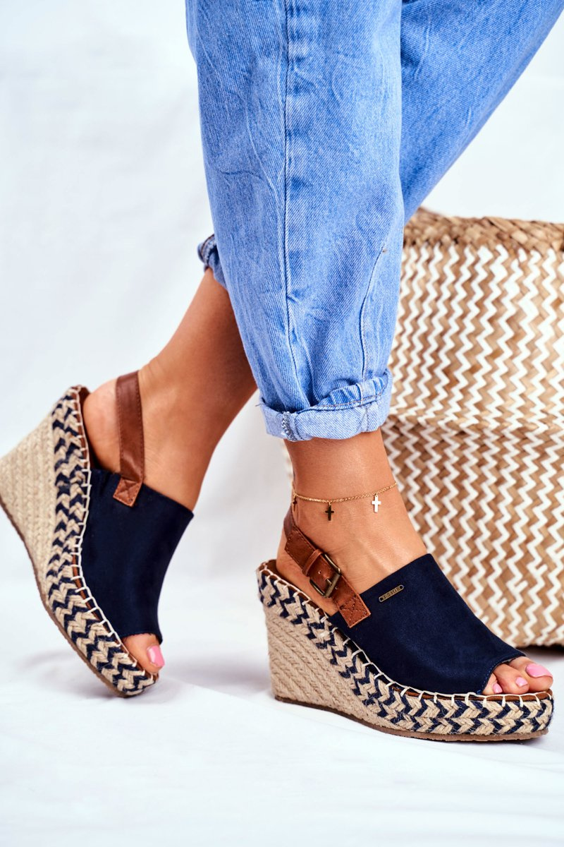 Dámské Sandály Na Klínu Big Star tmave modre FF274980