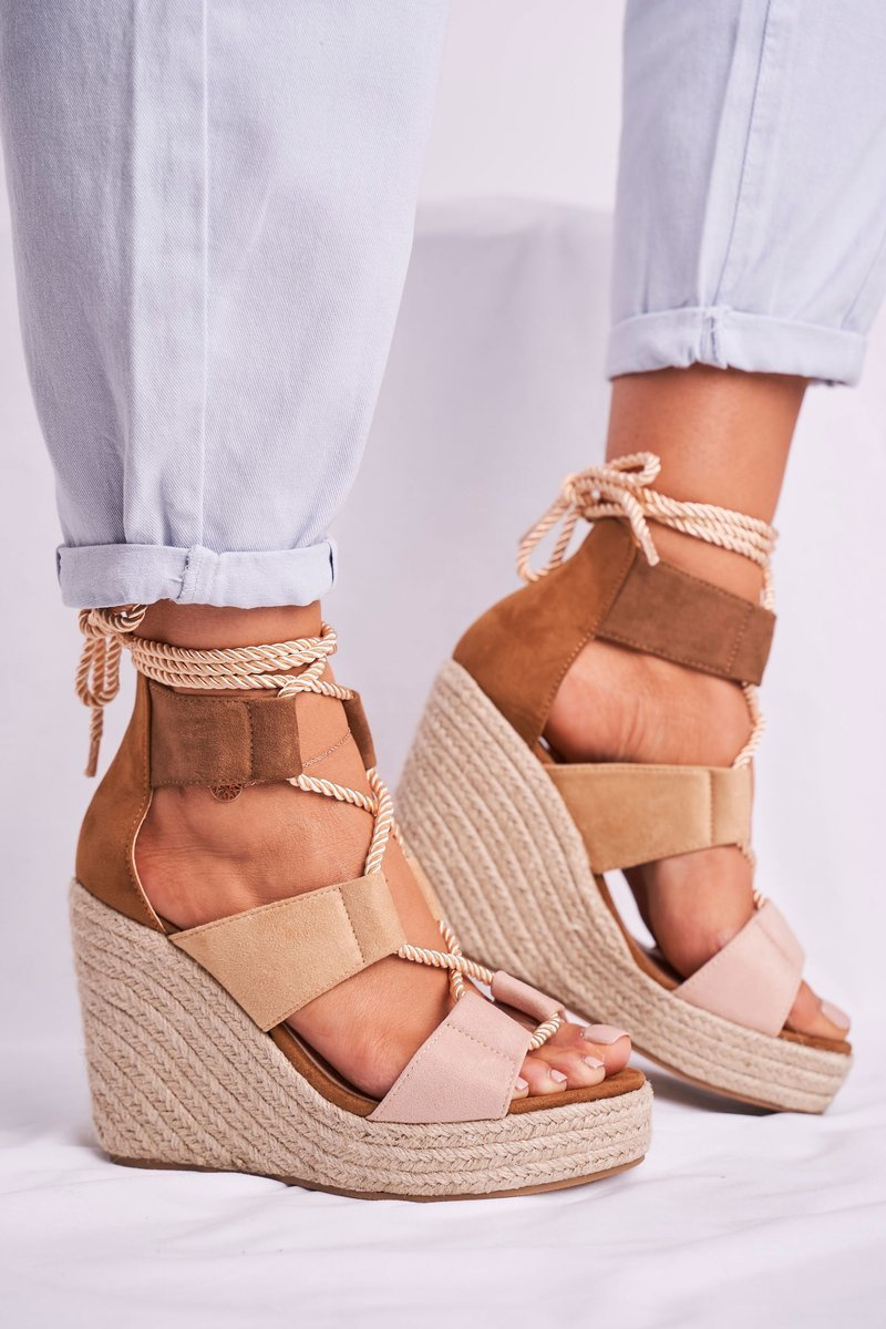 Dámské sandály na klínu Semišové béžové Beautiful One