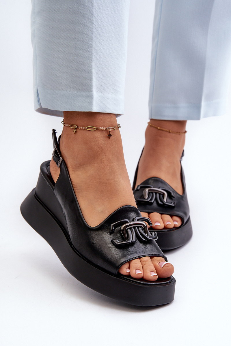 Dámské sandály na platformě a klínové boty s ozdobou černé Janesca