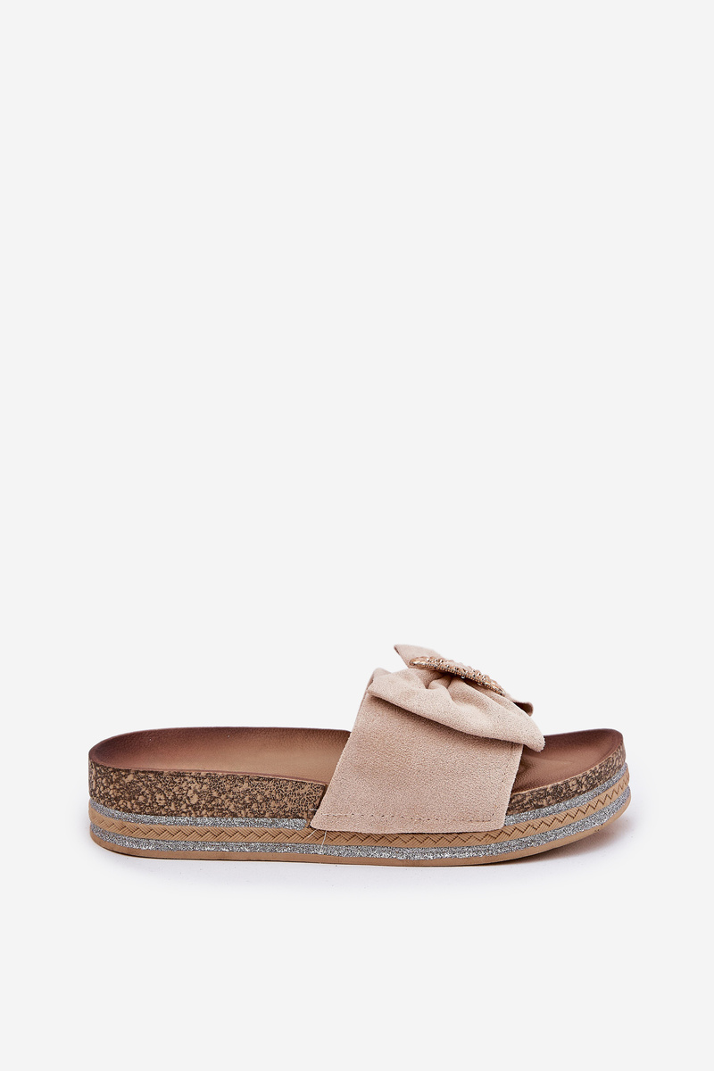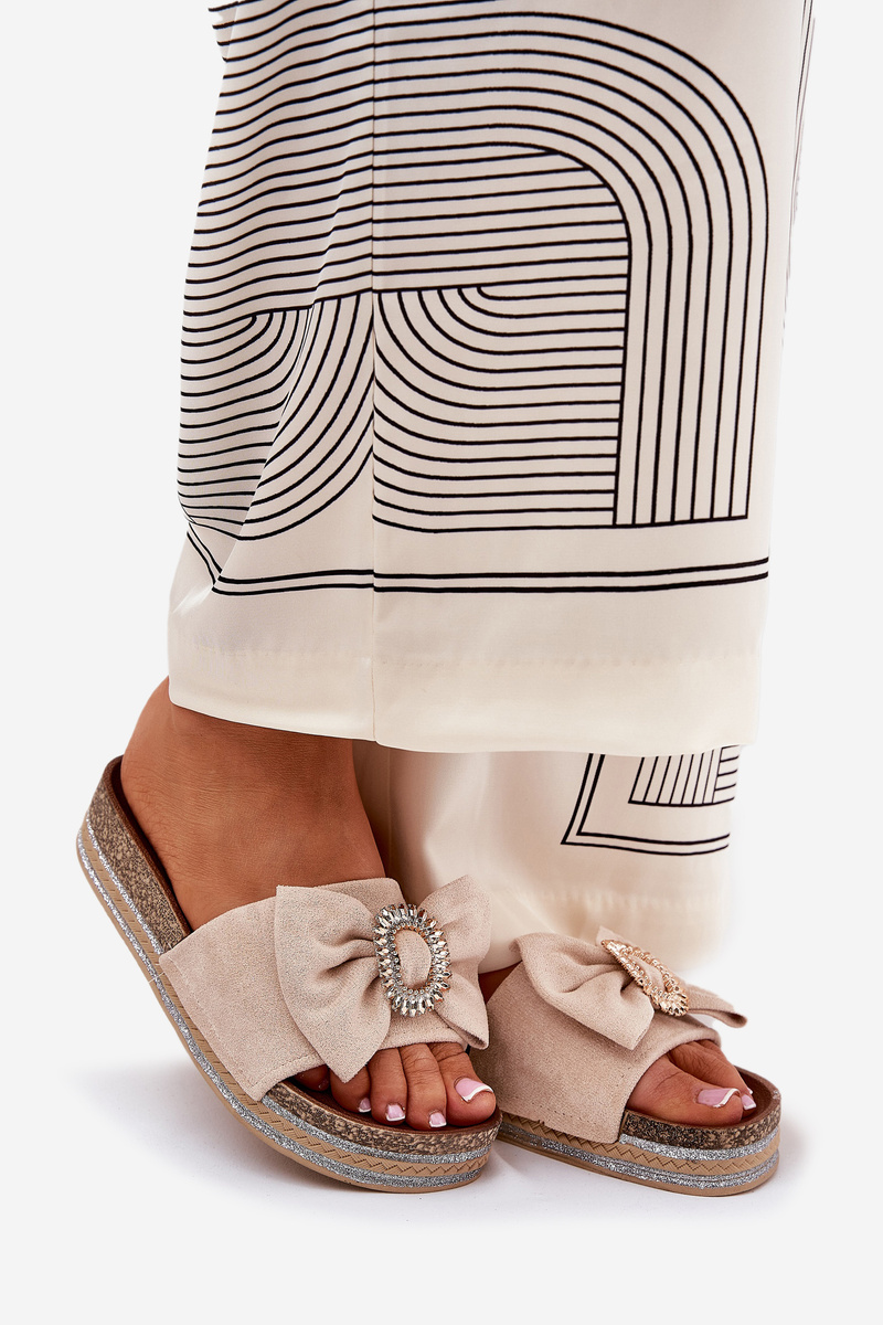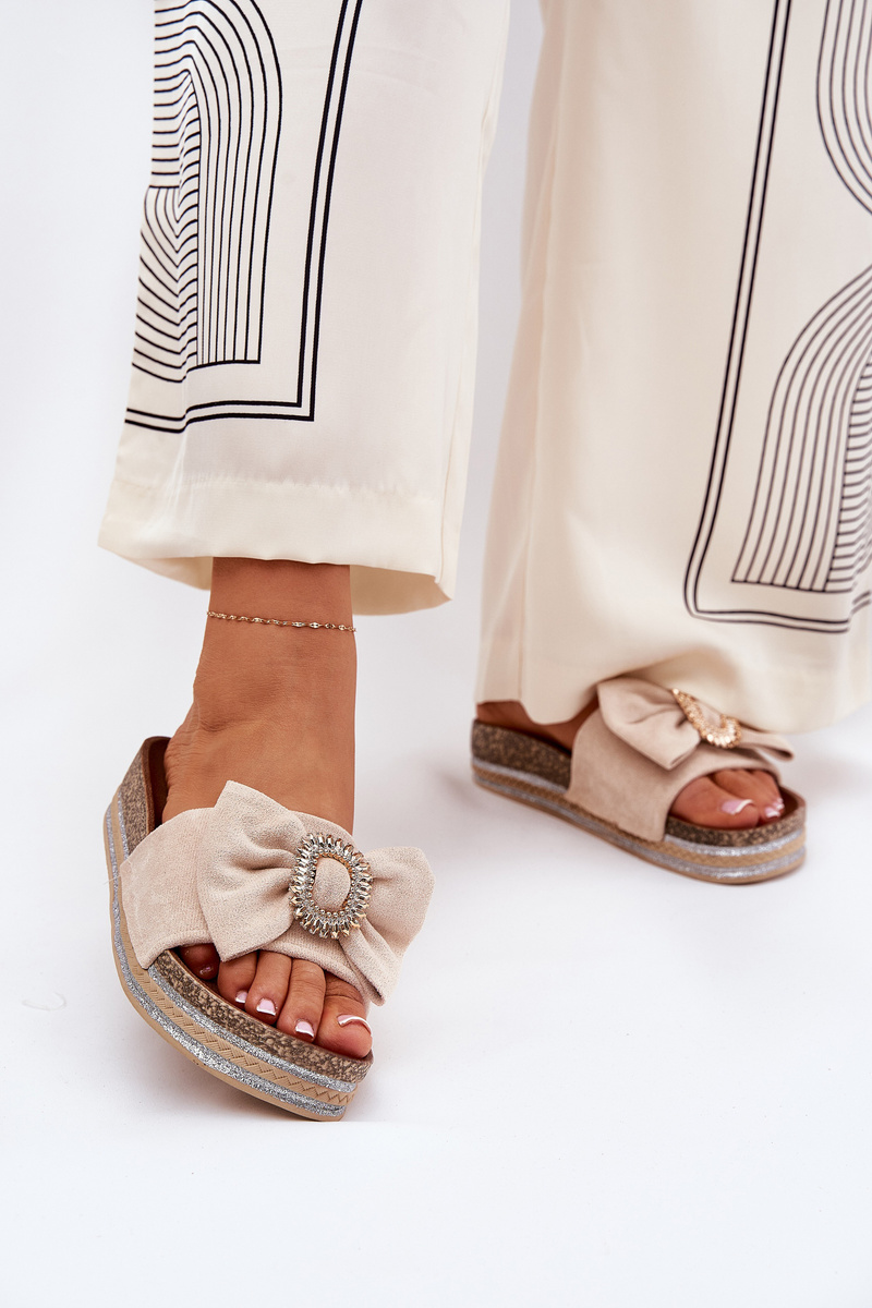 Dámské Sandały Na Platformě S Mašlí A Ozdobnou Broží Béžové Lenela