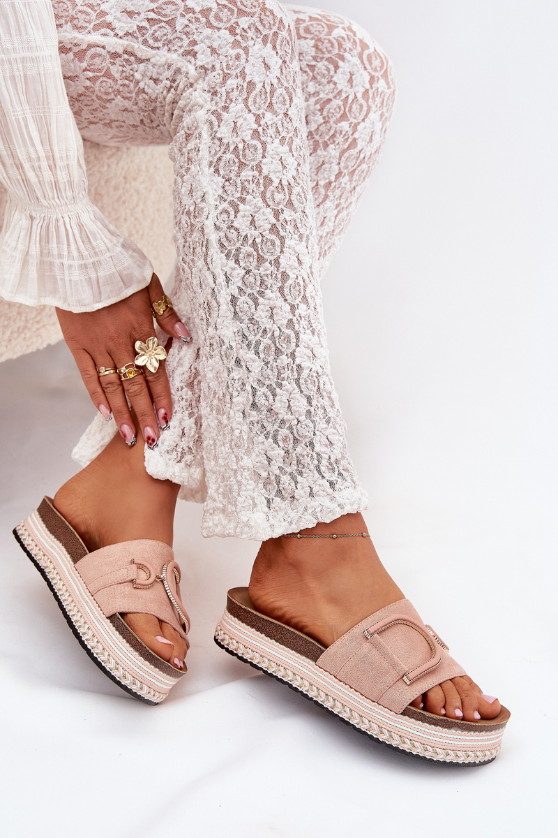 Dámské sandály na platformě s ozdobou růžové Daphira