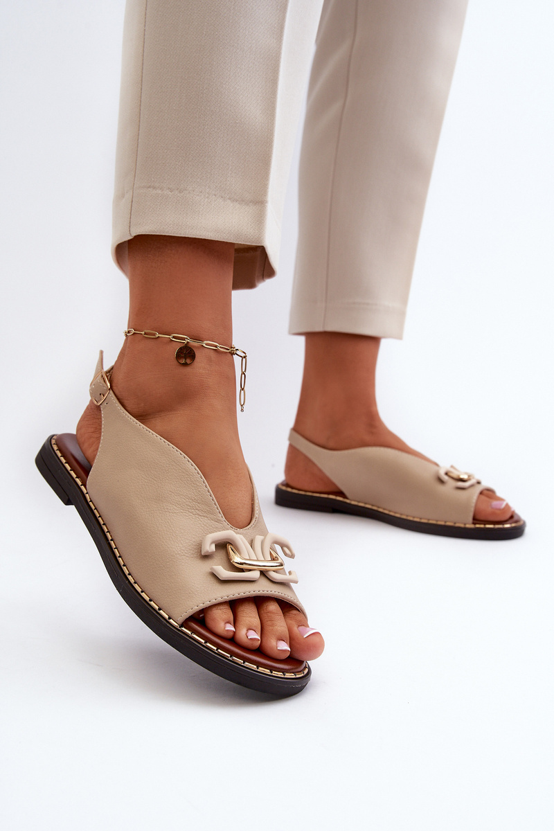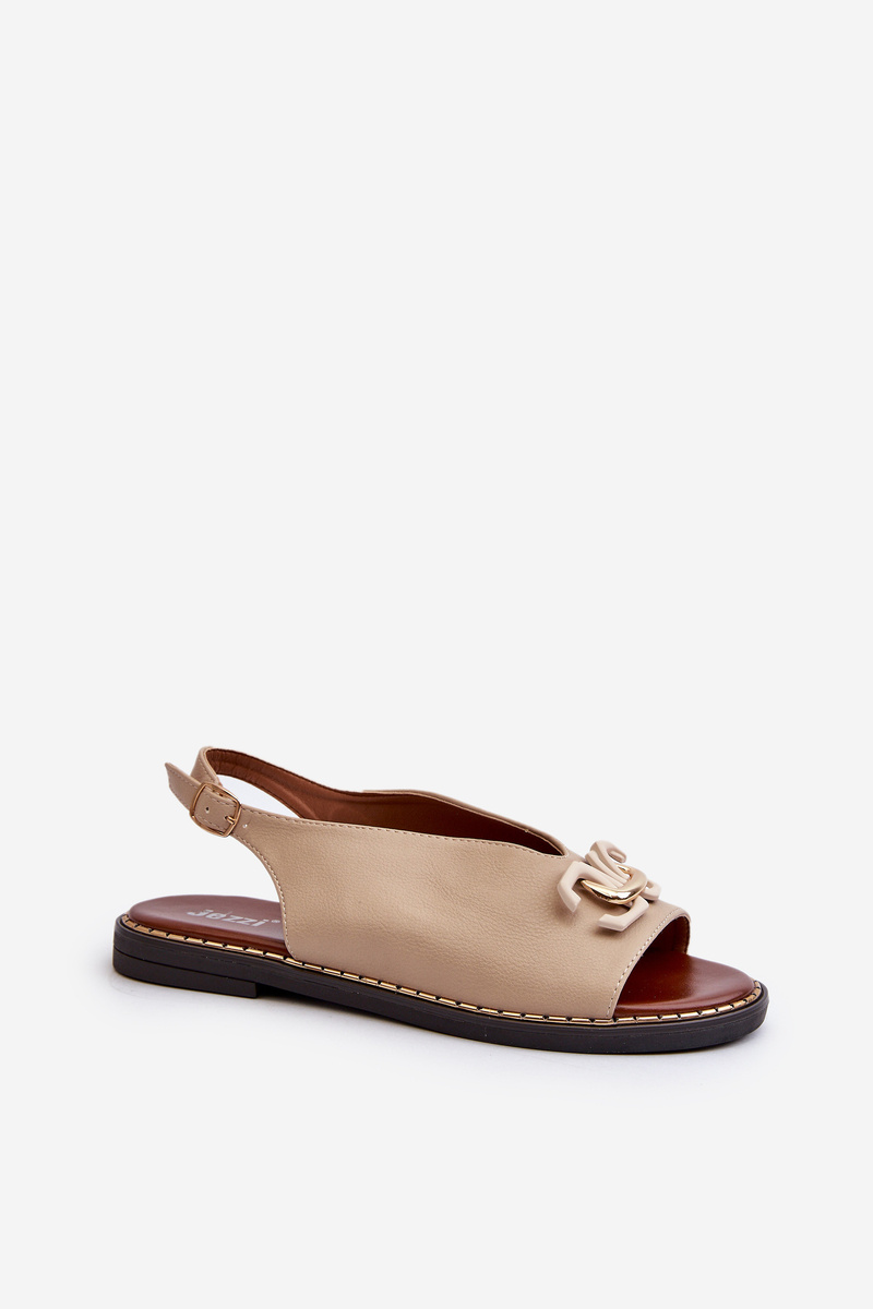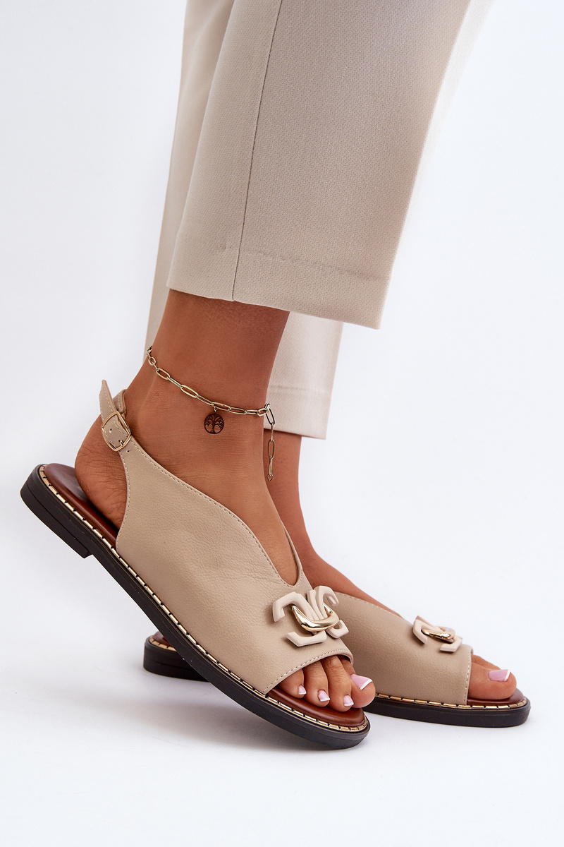 Dámské sandály na ploché podrážce s ozdobou béžové Loraeleh