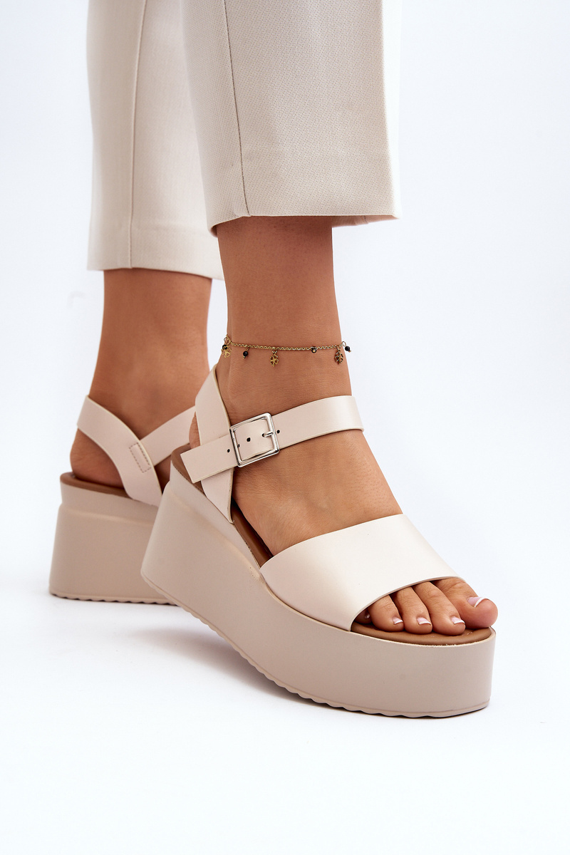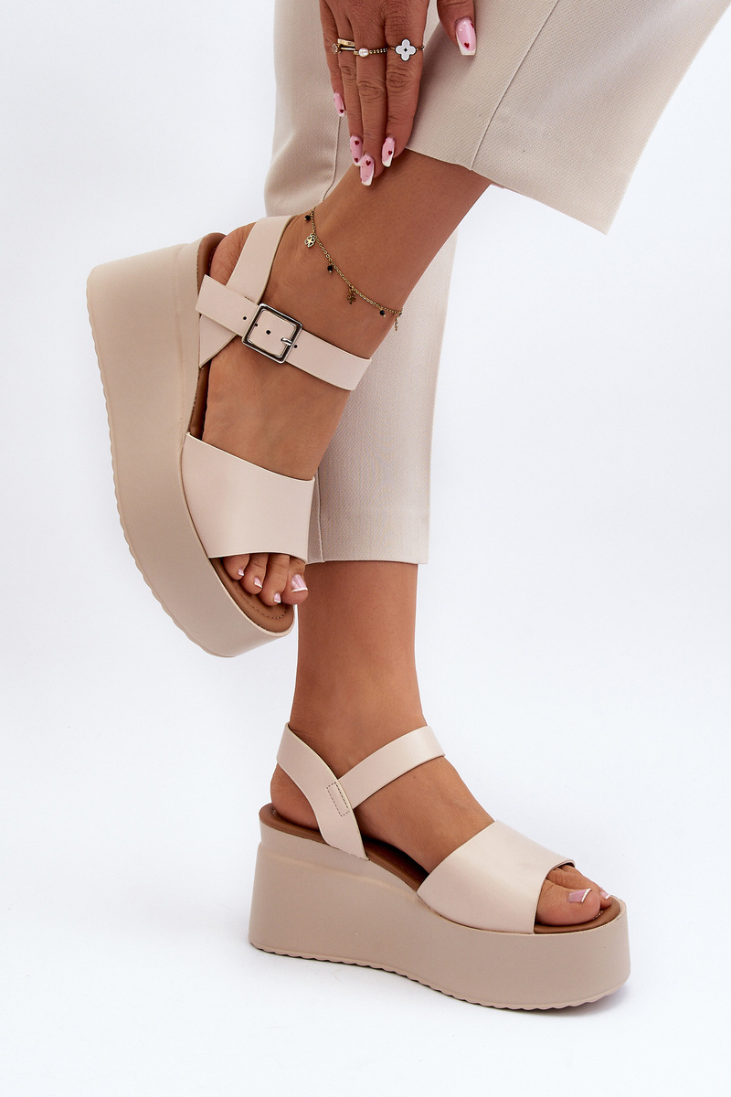 Dámské sandály vyrobené z ekologické kůže. Vsazeno na klíně a platformě, což jim nejen dodává módní vzhled, ale také zajišťuje stabilitu během chůze. Zapínají se na nastavitelný popruh se sponou, snadno je přizpůsobíte své noze. Při výběru velikosti se řiďte tabulkou velikostí.