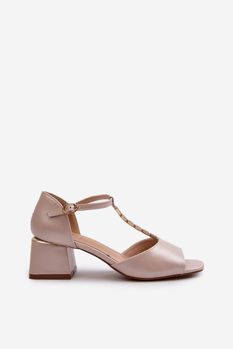 Dámské sandály na podpatku bloku s ozdobným páskem z ekokože Zlaté Obivena