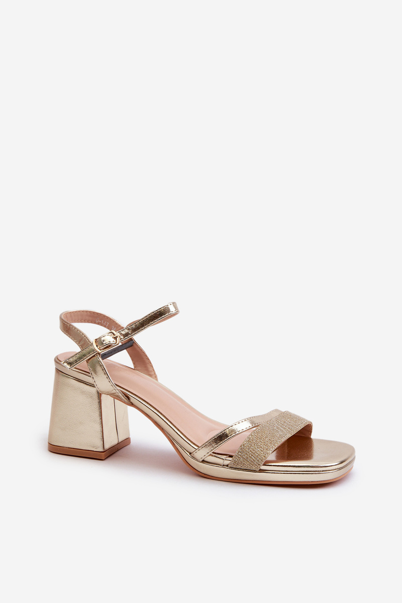 Dámské sandály Na podpatku s lesklým páskem Zlaté Tessata