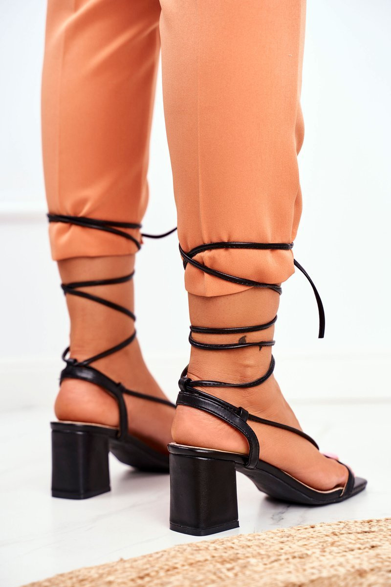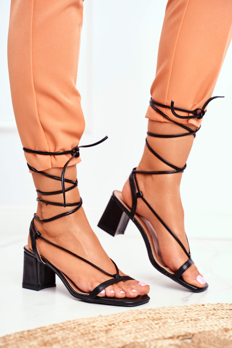 Dámské Sandály Na Podpatku Šněrované Černé Morning