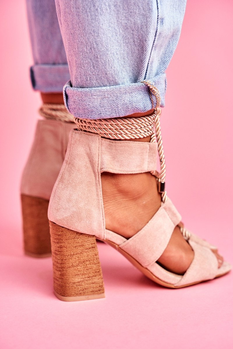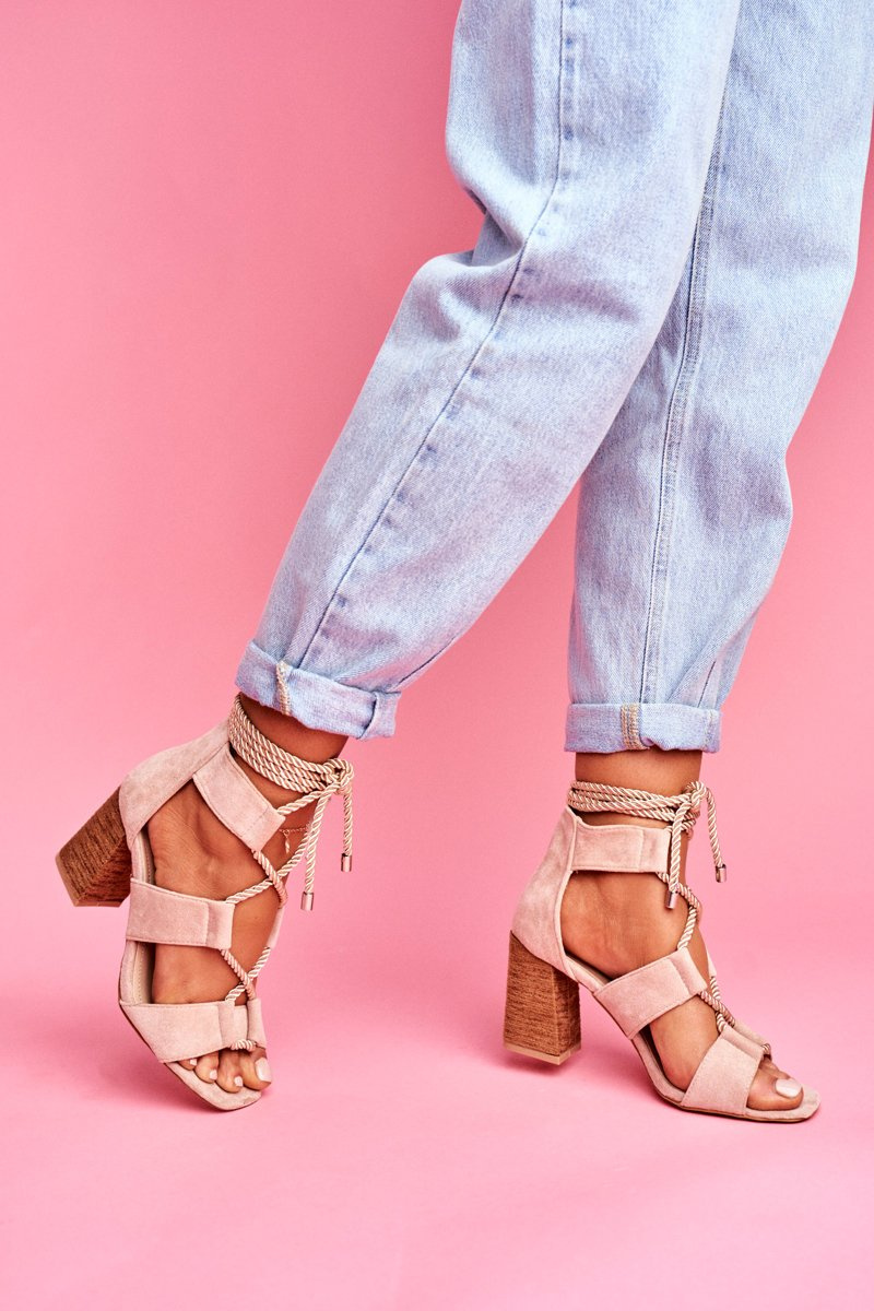 Dámské Sandály Na Podpatku Šněrované Semišové Béžové Amore